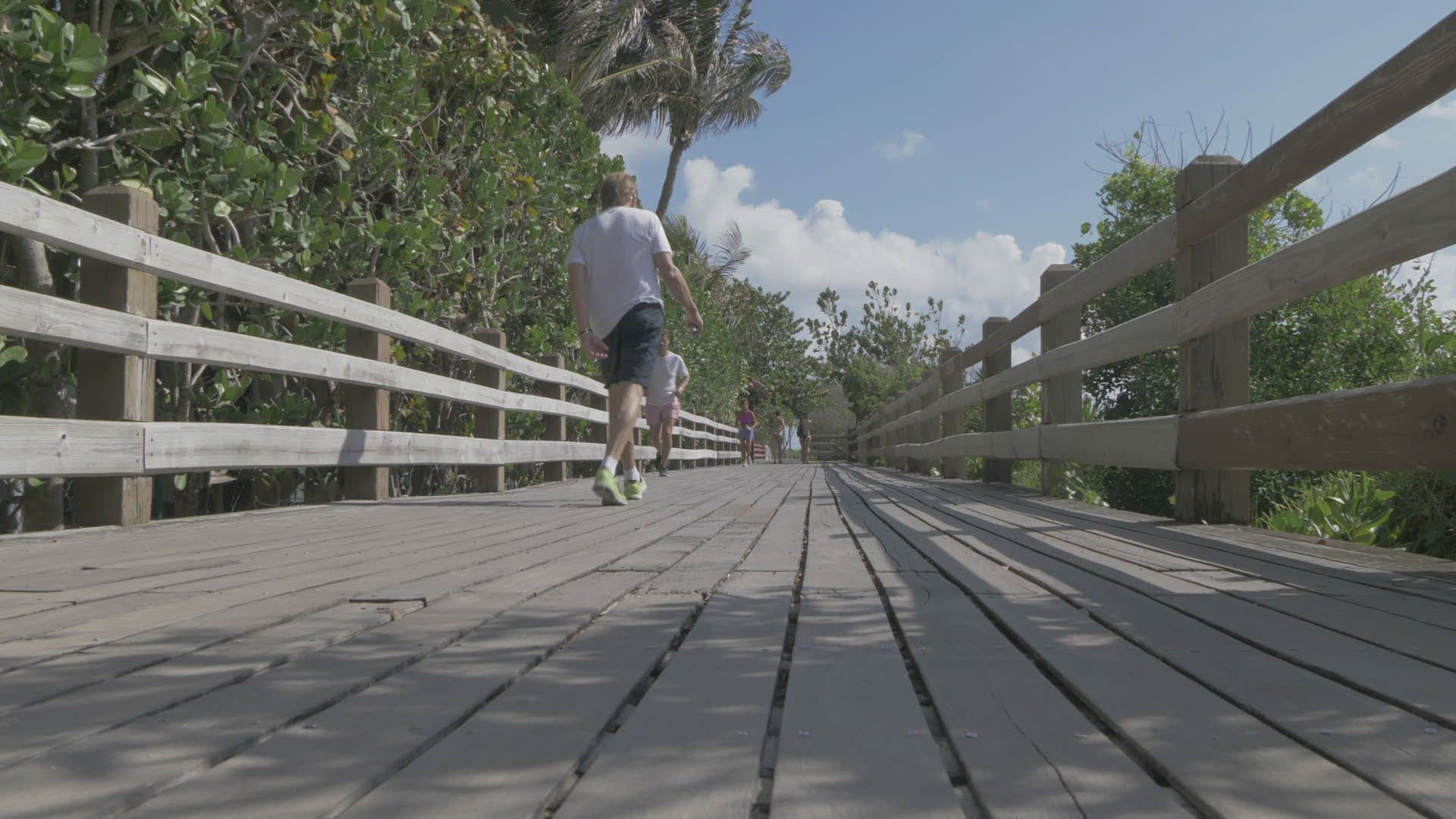 1052136 - Sunset in Florida with coastline man walking reflection in slow motion