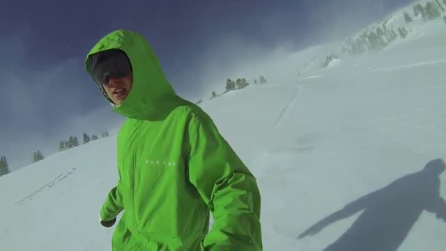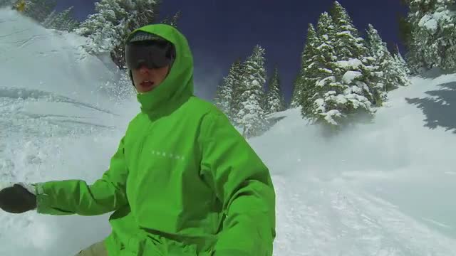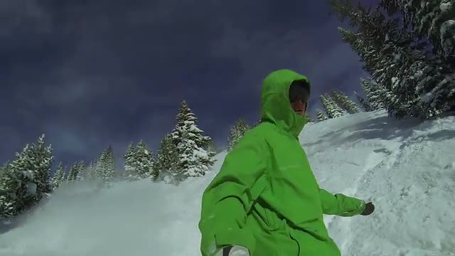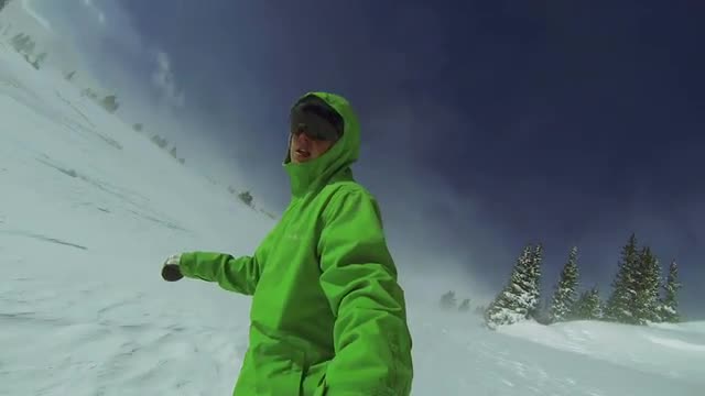 > POV Slow Motion Man Snowboarding In Powder
