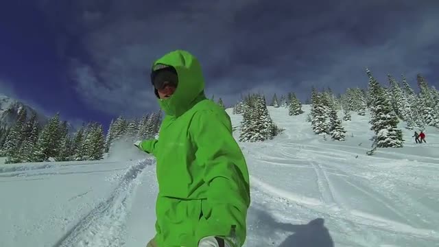 > Slow Motion POV Extreme Snowboarder In Powder