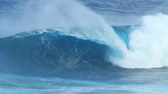 > Slow Motion: Beautiful Blue Giant Ocean Wave Crashing