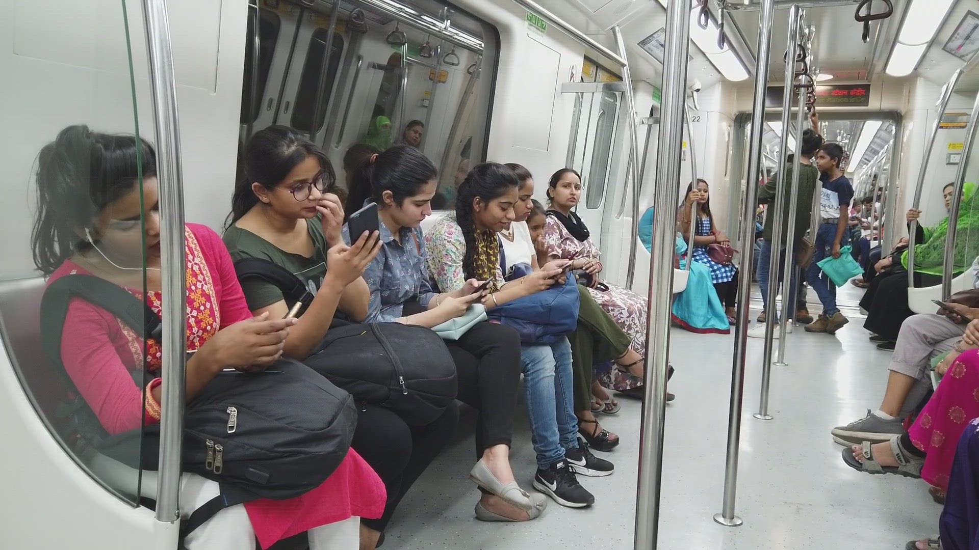POV from open top bus circulating roundabout with palm trees and high rise blocks in Valencia, Province of Valencia, Spain