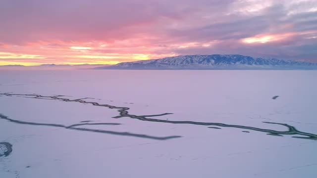1361612 - Colorful winter sunset over Utah Lake frozen in winter