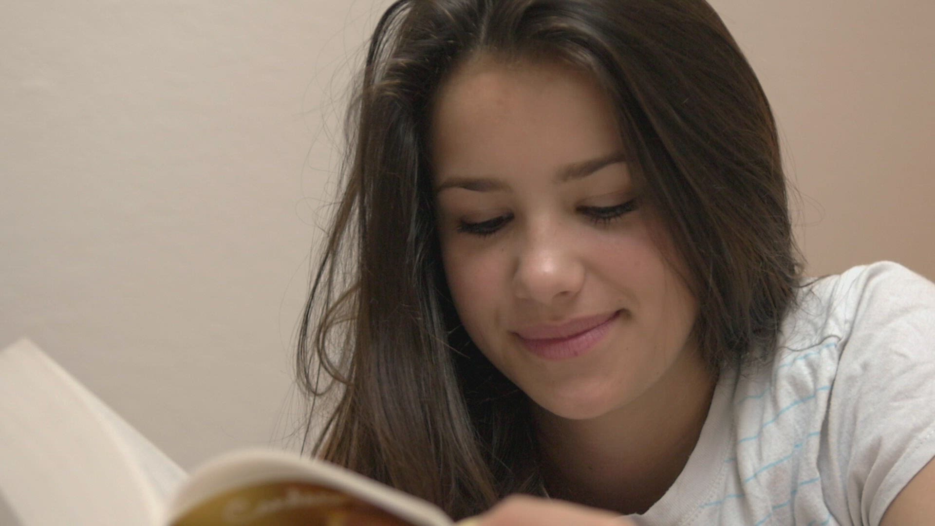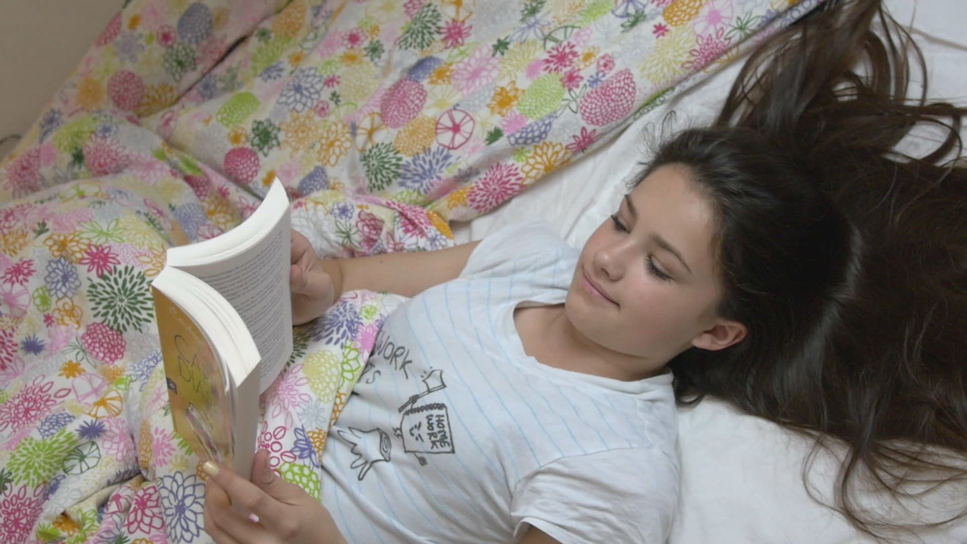 Teenage girl sleeps in her bed