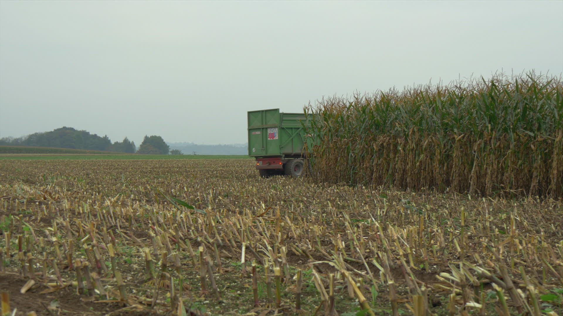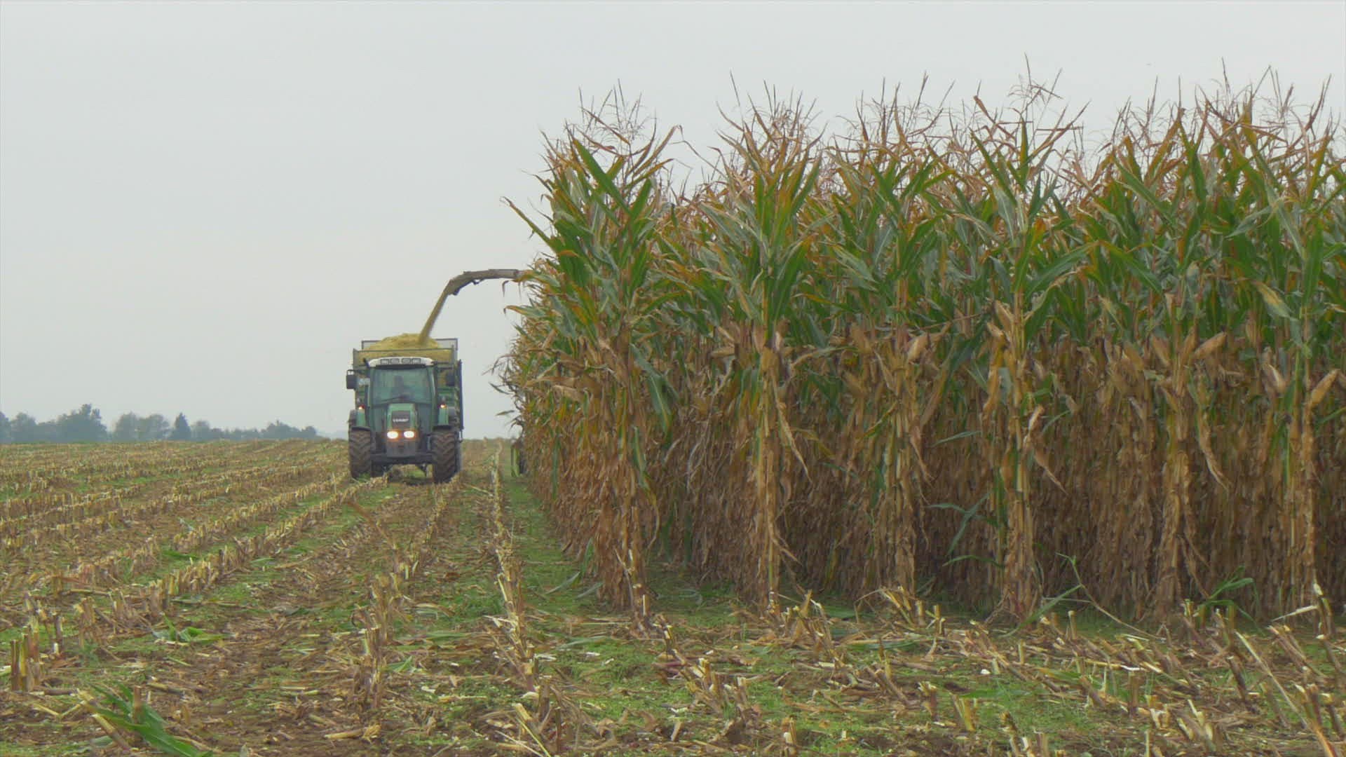 Corn is harvested - crushing and loading of crop into extra-loader