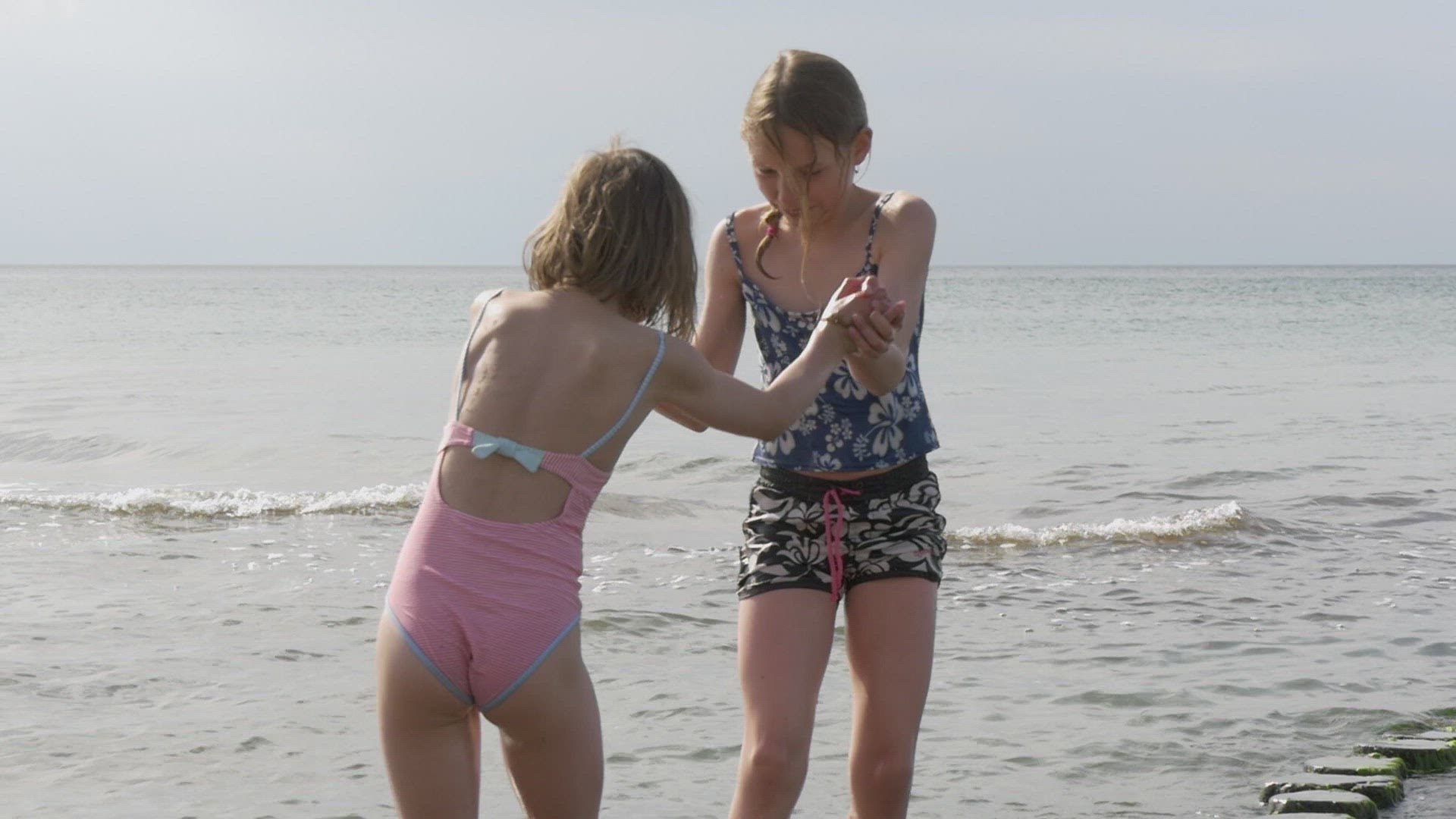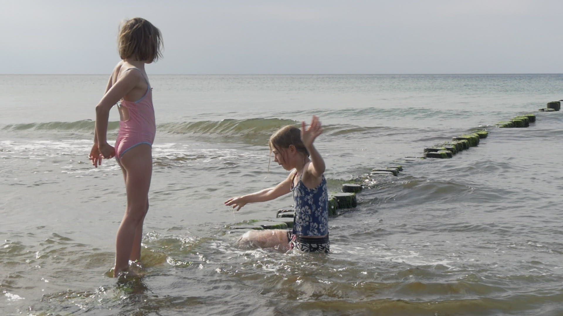 three kids in the cold water