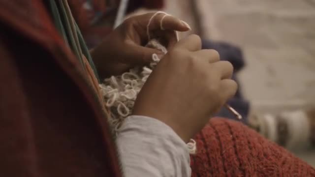 A woman in Cusco knitting