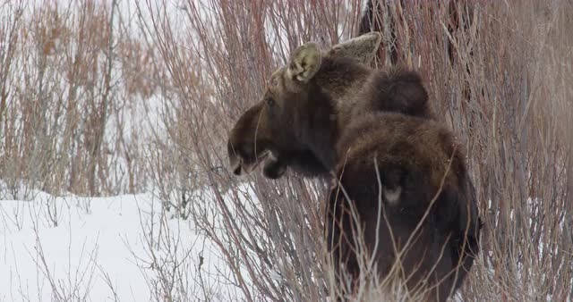 773549 - Young Bull Moose Eating during Fall in Grand Teton National Park on a Cold Morning