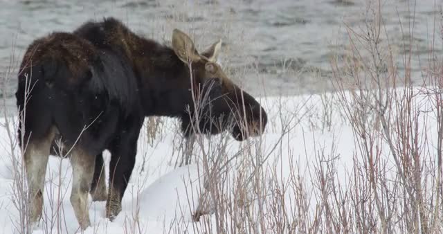 499678 - Moose eating near the river during winter 4