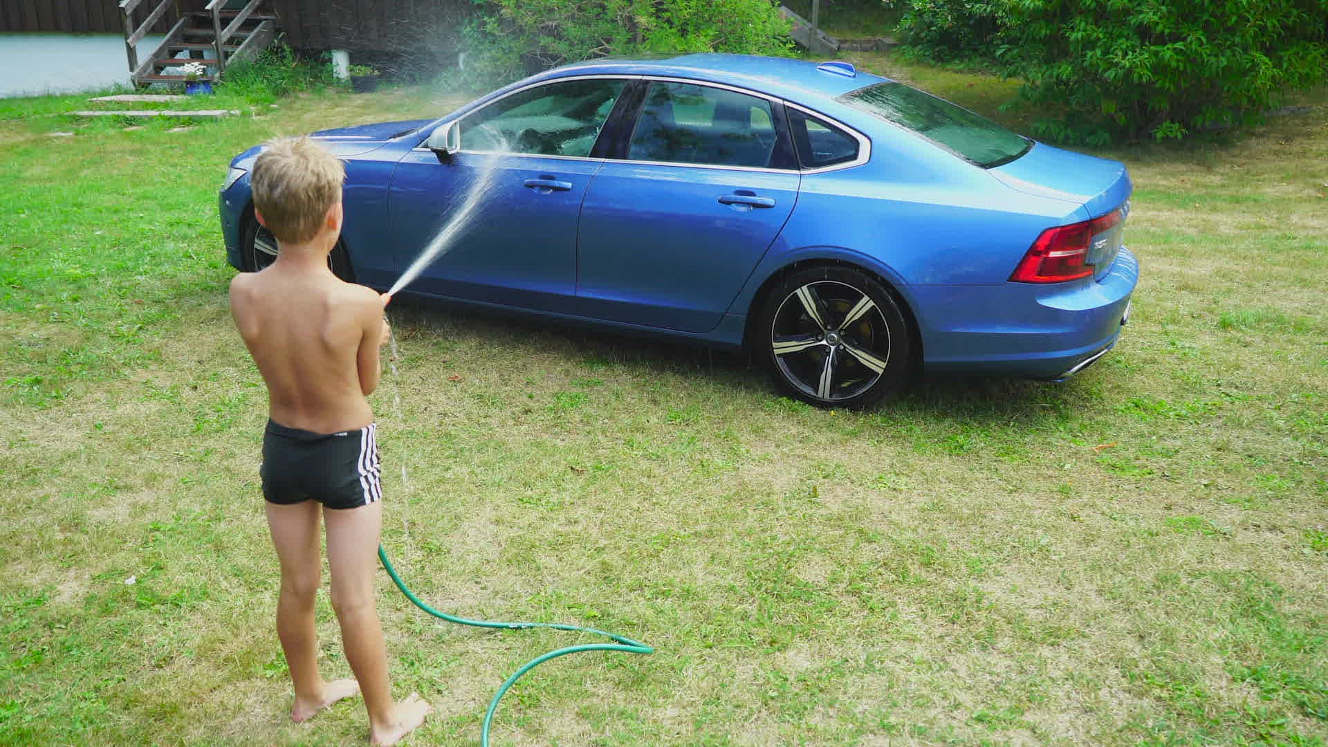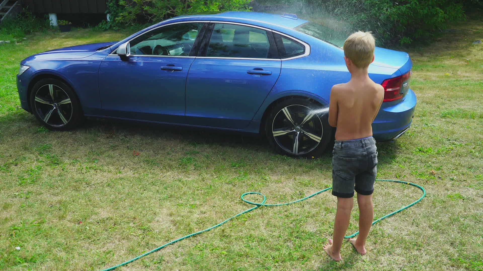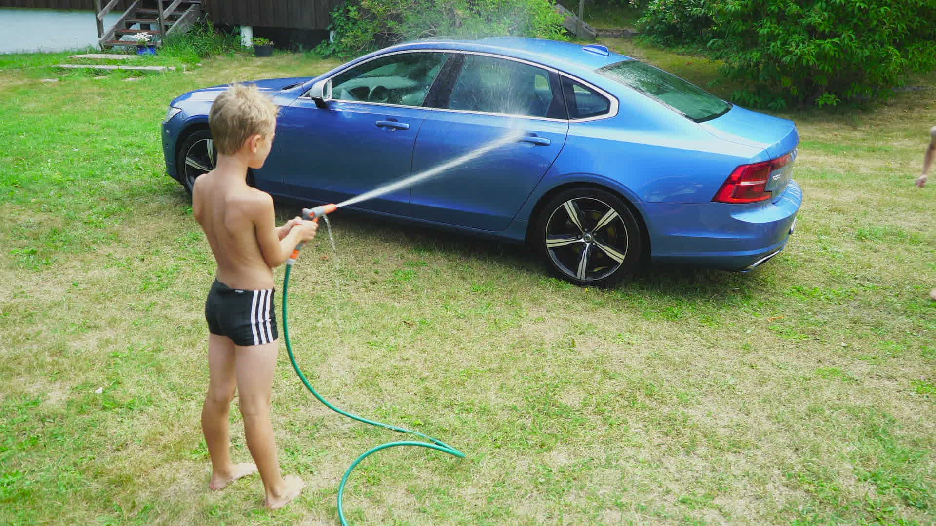 boy sitting in stream