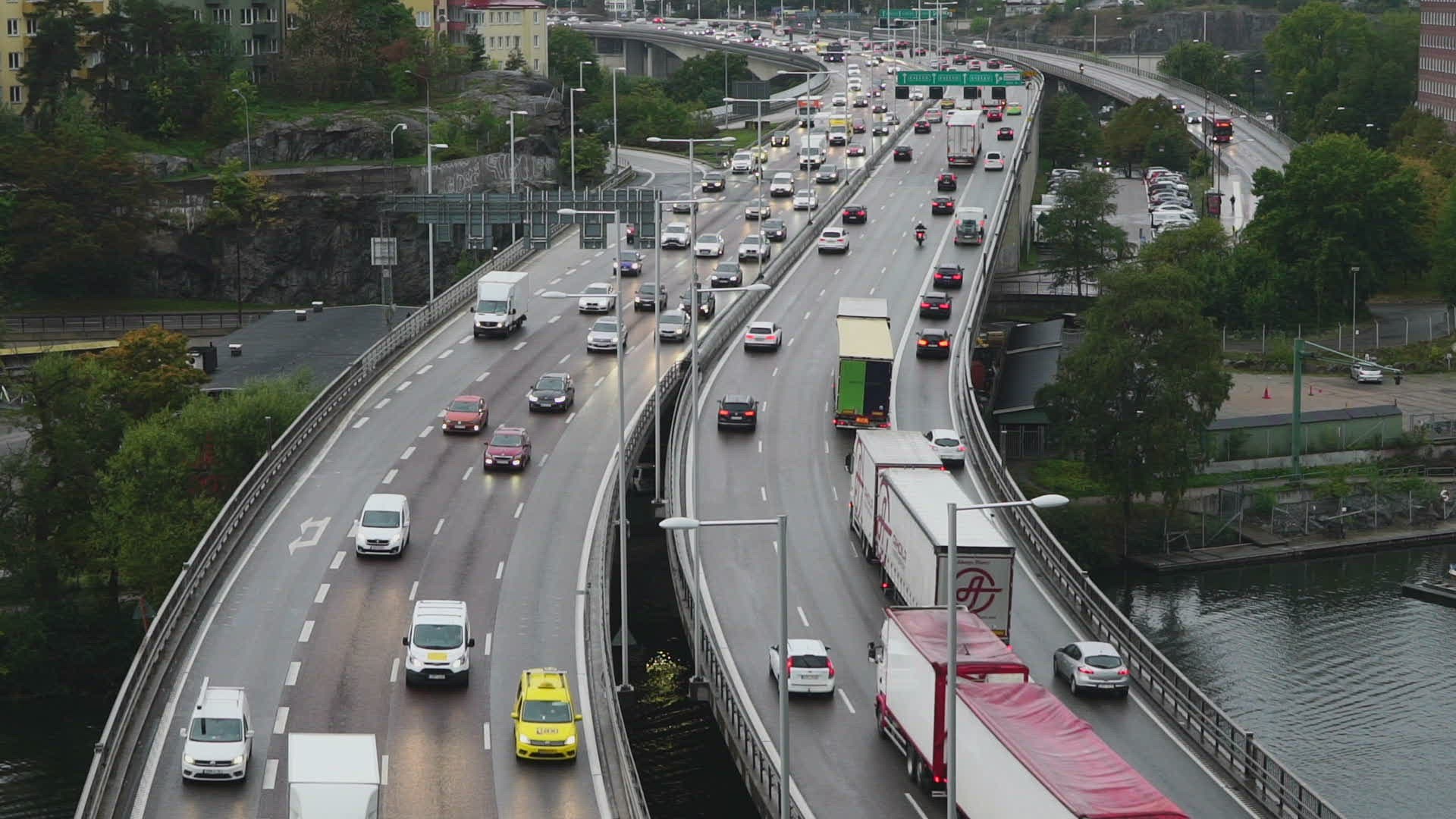 Morning traffic on Essingeleden in Stockholm
