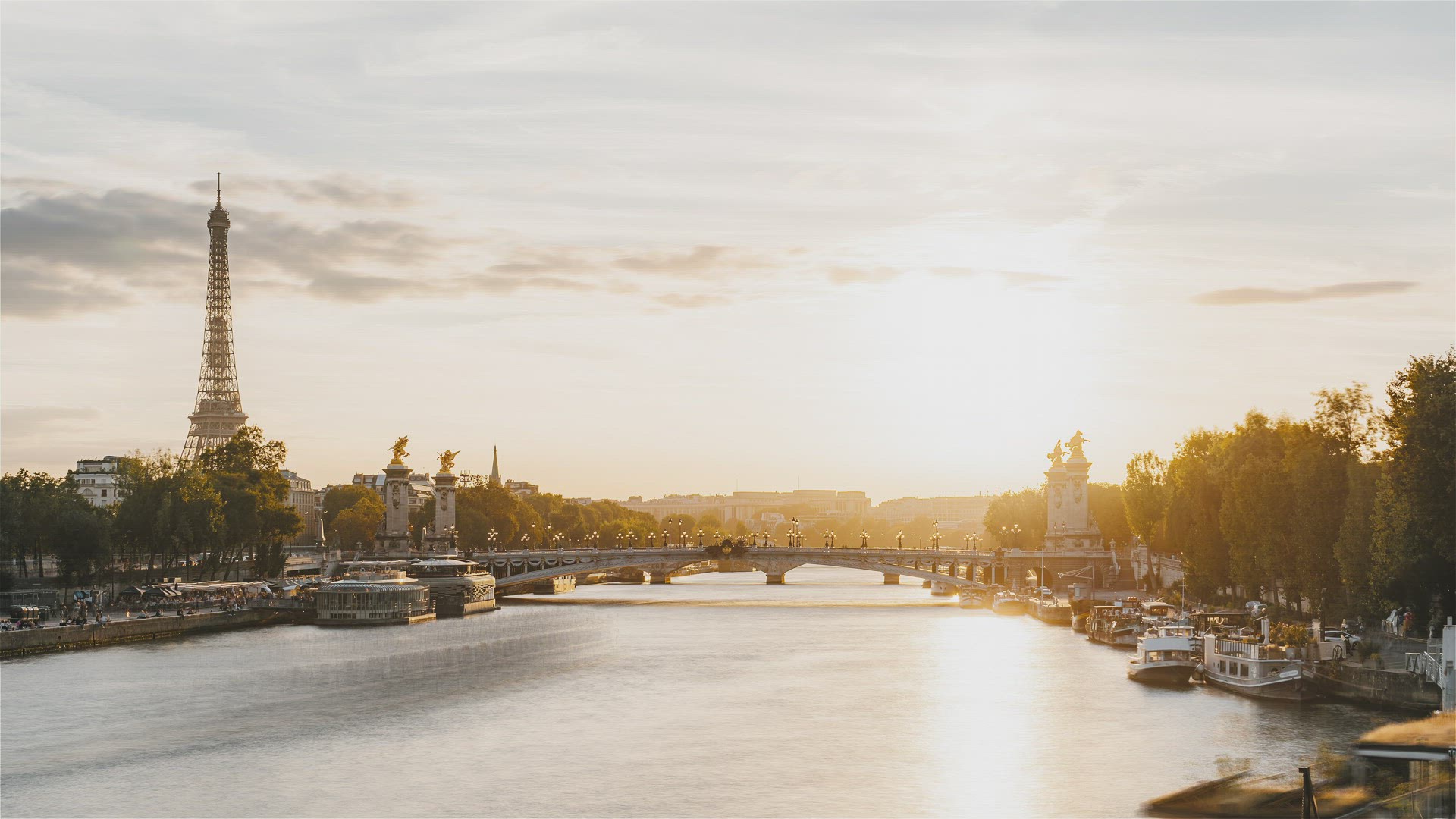 416001 - Time-lapse of sunset over Paris skyline and Eiffel Tower.