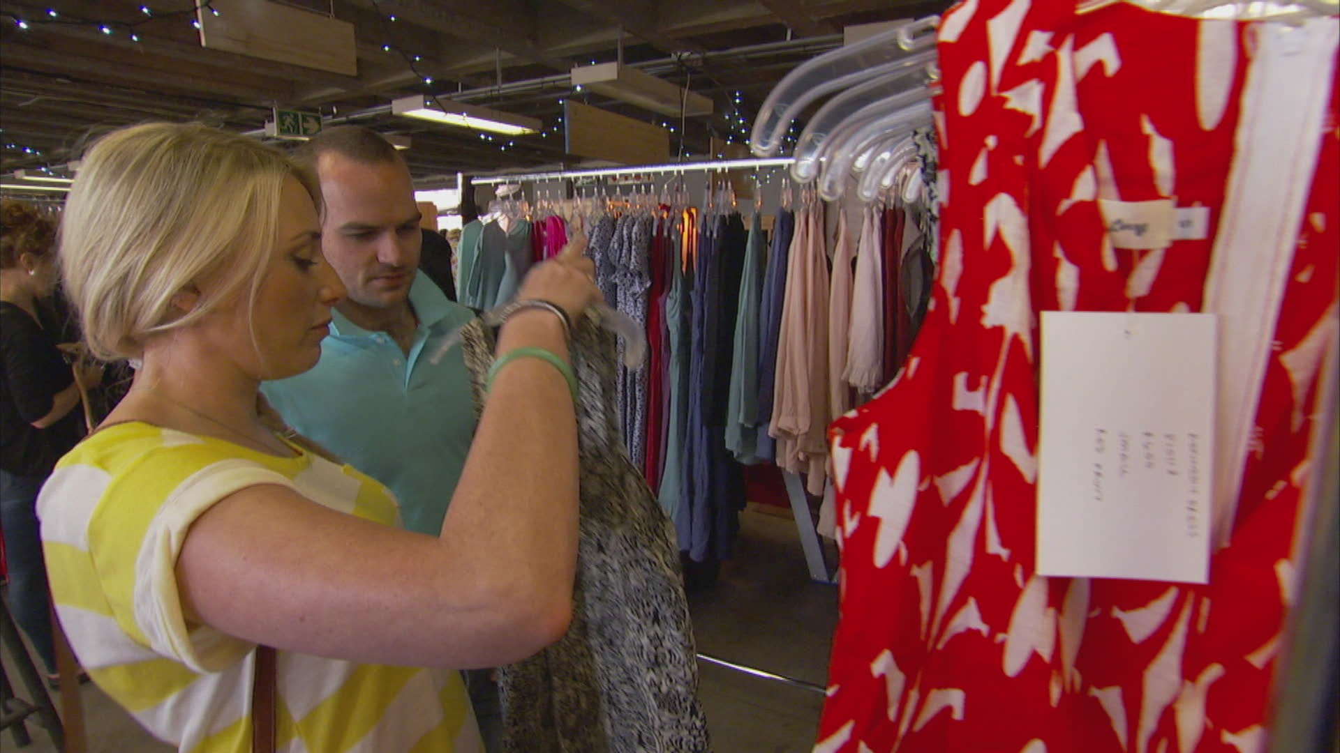 Handheld shot of a woman trying on sunglasses at The Neighbourgoods Market in Johannesburg