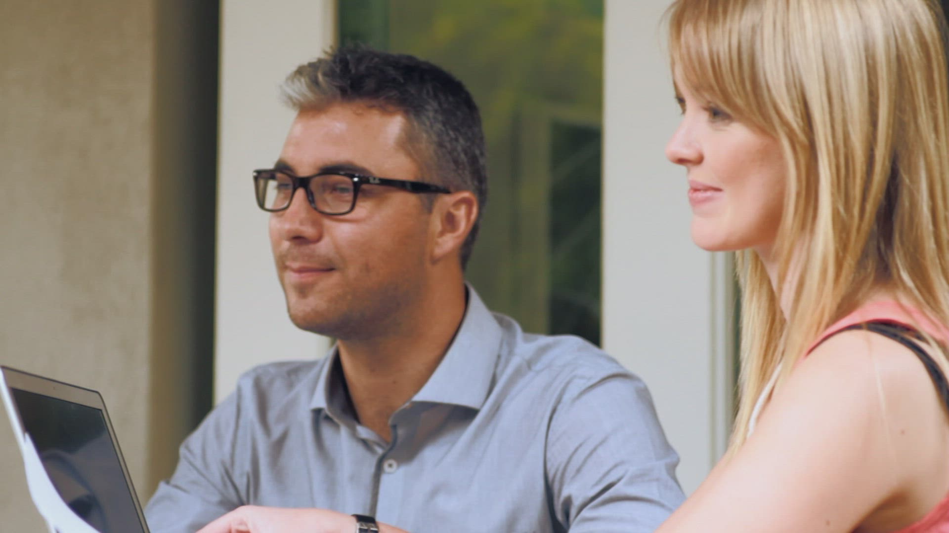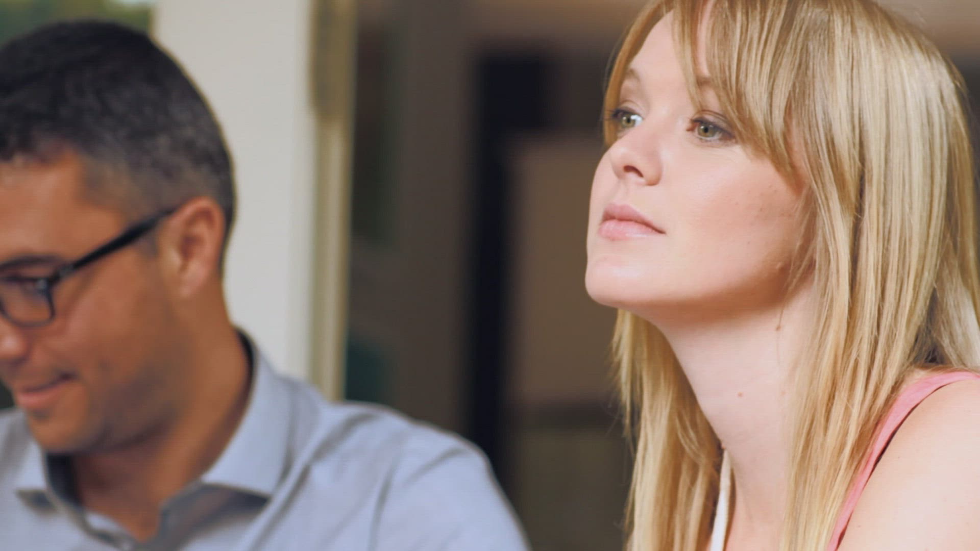 Handheld mid shot of colleagues in a meeting