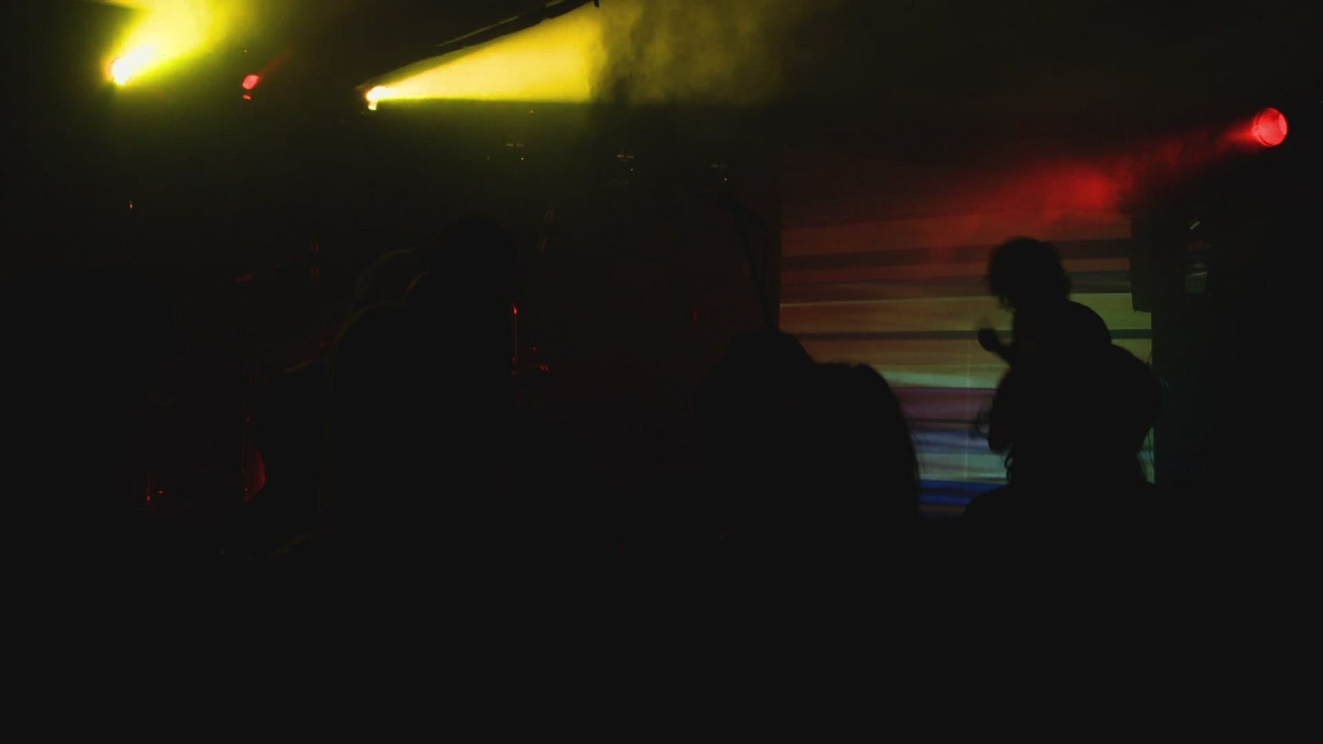 Mid shot of a group of people watching a band