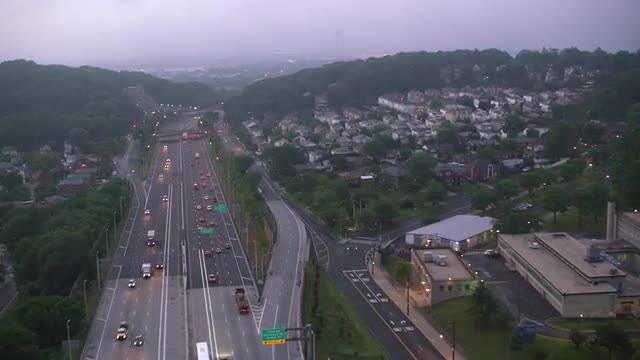 Aerial view of I-90 bridge near Snoqualmie Pass in Washington State.