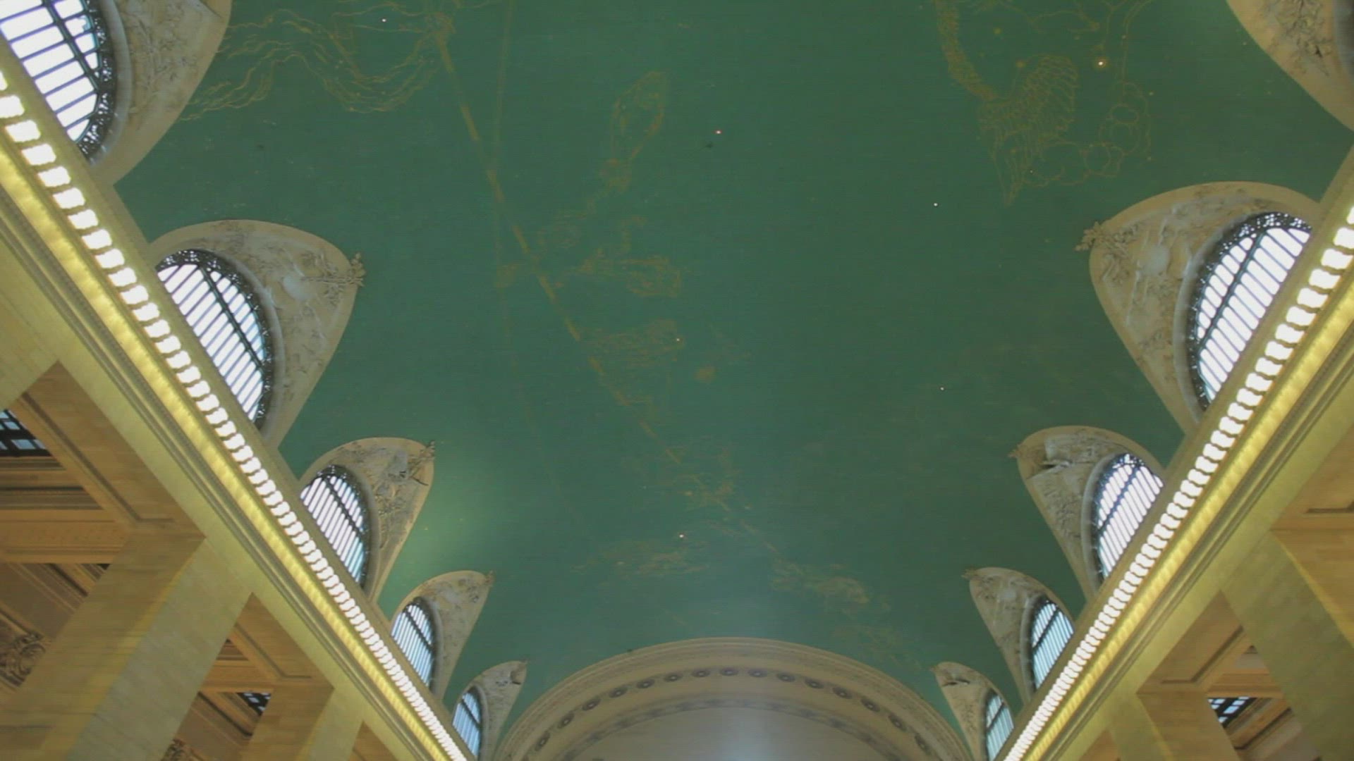 Tilt down of the inside of Grand Central Station