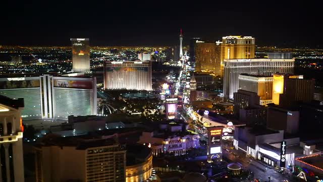 372623 - Las Vegas, Nevada, USA - November 26, 2014: Aerial view of Las Vegas Strip at night