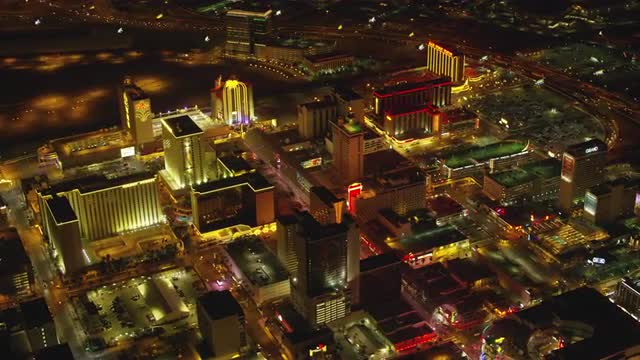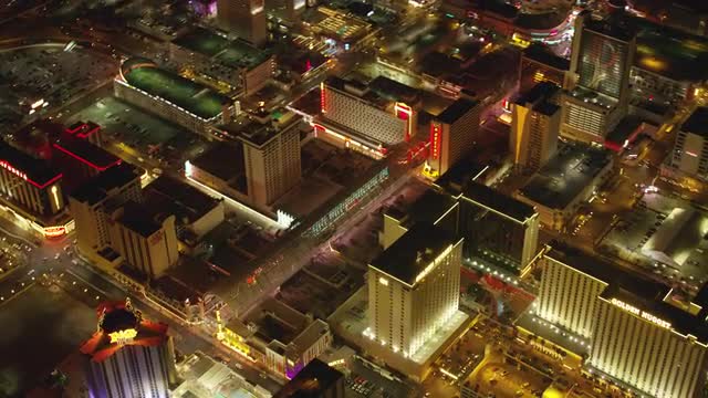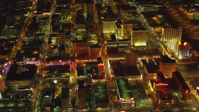 998934 - Las Vegas, Nevada circa-2017, Aerial view of downtown Freemont Street Las Vegas at night. Shot with