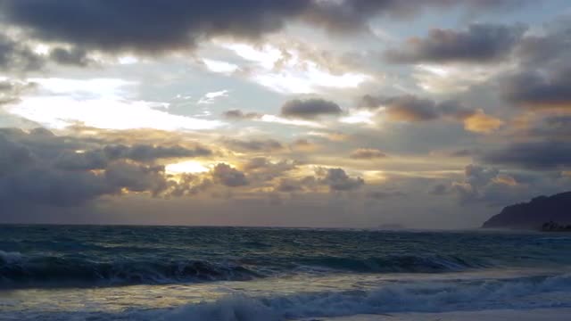 View of the Pacific Ocean from a Hawaiian beach during the early morning sunrise.