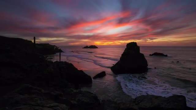 390434 - Low Angle Moving Over Rocky Seashore At Sunset