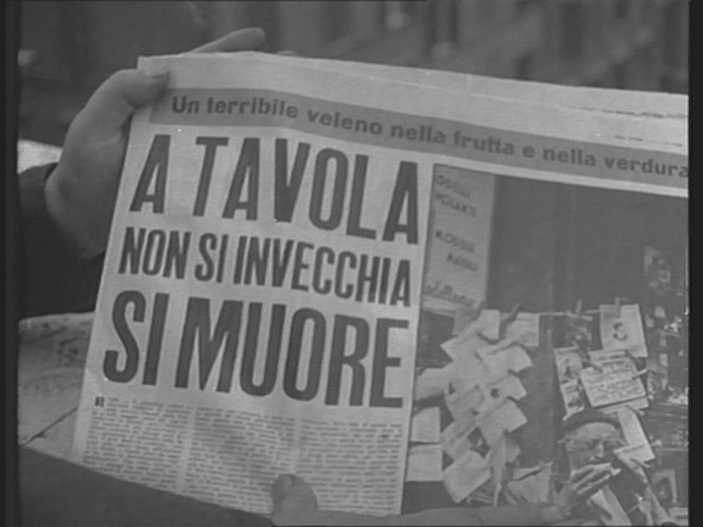 January19601960-196920th CenturyShot on FilmFood ScandalScandalPesticideArtichokeFlower VegetableVegetablesFood (Nutrition)Food (Food & Liquids)NutritionCherryDrupeFruitProgeny (Fruit)PlantLiving BeingHorticultureCultivationAgribusinessHeadlinePrint (Print Media)CultureNews (Media)Mass MediaFruit and Vegetable MarketMarket (Place)CommerceTomato (Vegetables)Fruit VegetableMarket StandNewspaperStall (Shop)Environmental PollutionSi gira!Eating (Human)ConsumingNewsreelNewscastAudiovisualBoyMale (Human)PeopleItalySouthern EuropeEurope (Continent)SequenceIndoor ShotHistorical FootageWomanFemale (Human)AdultDayStock FootageOutdoor ShotBlack-and-whiteReal Time708181935708-181-935