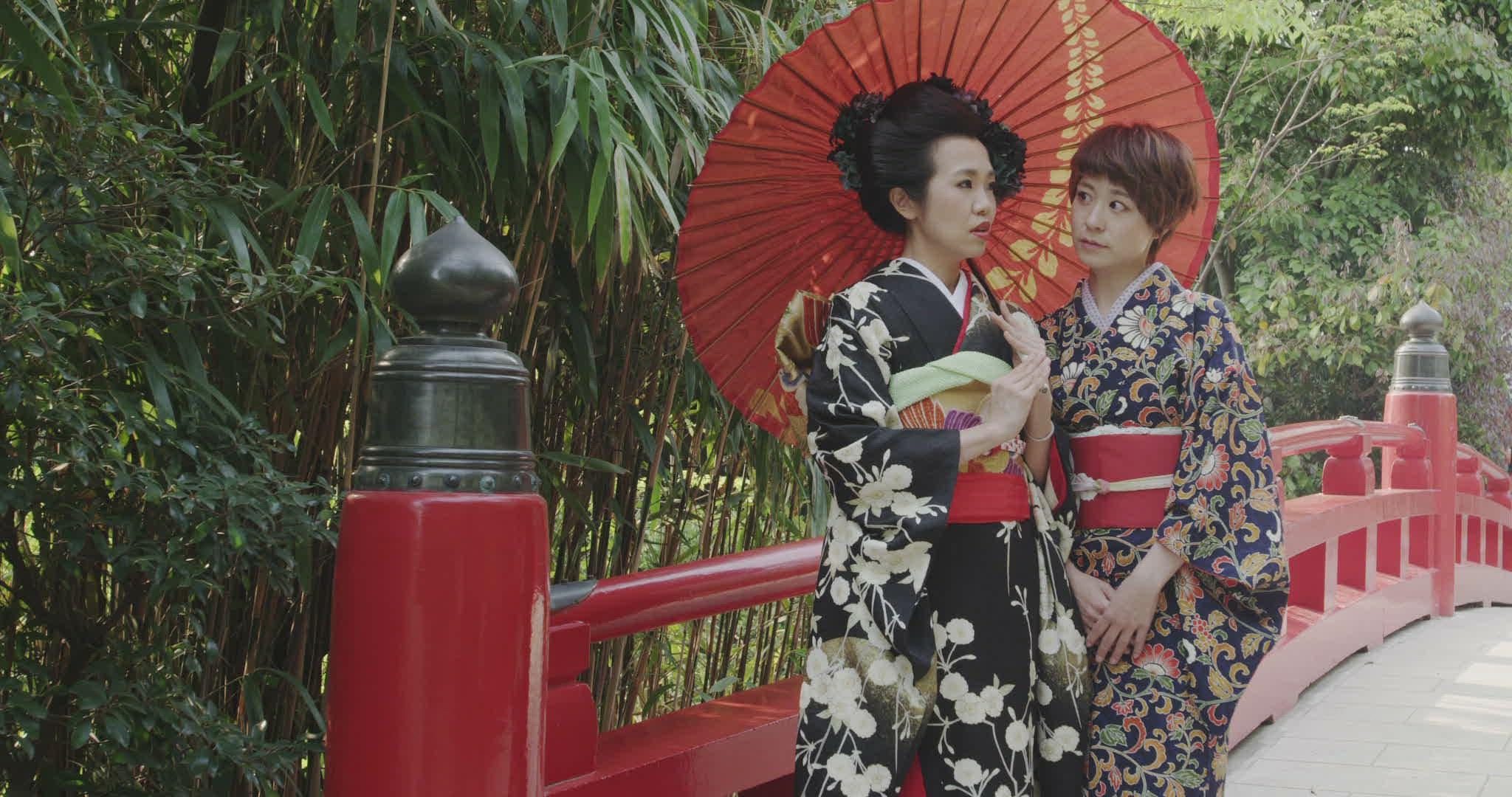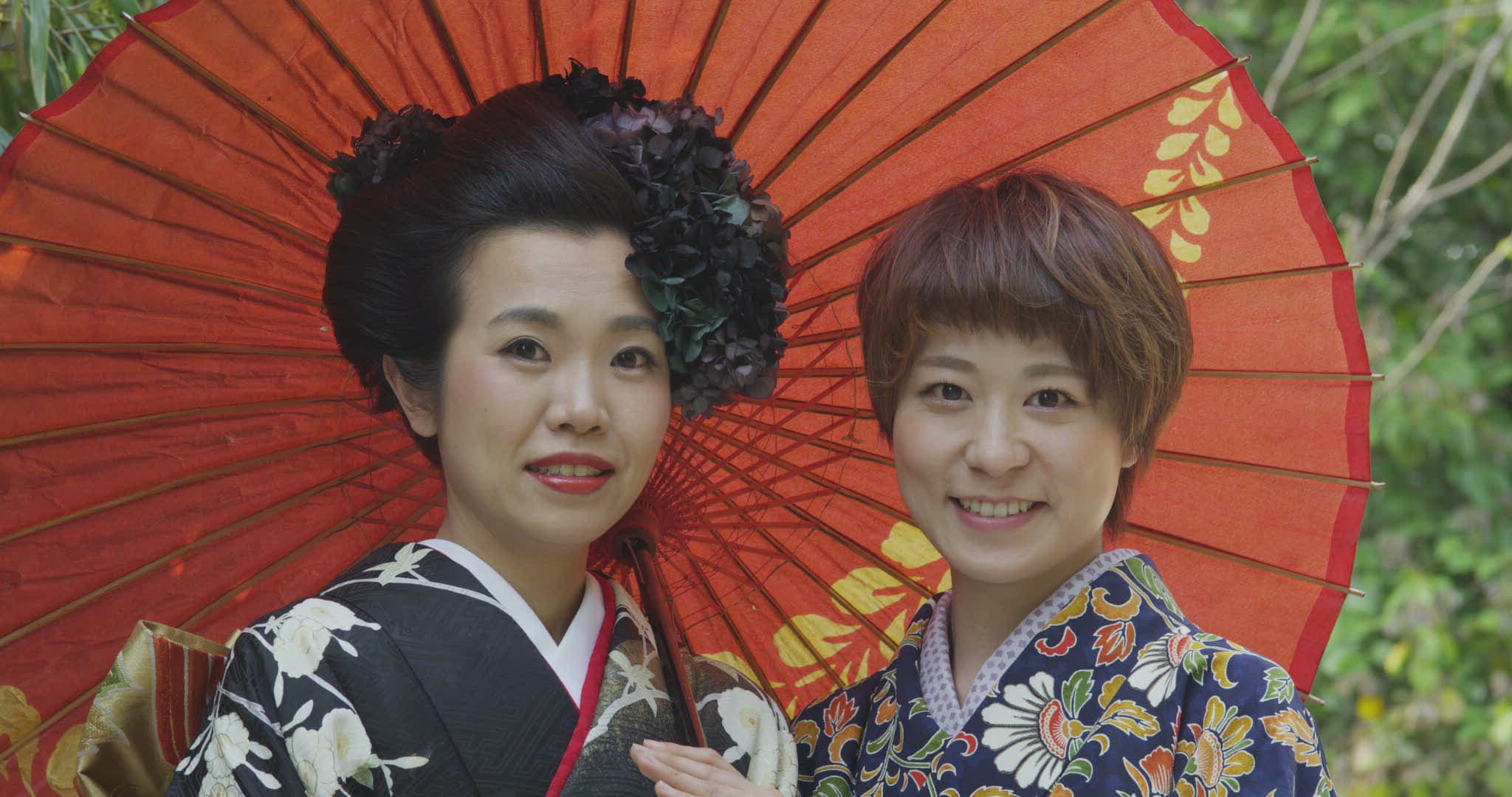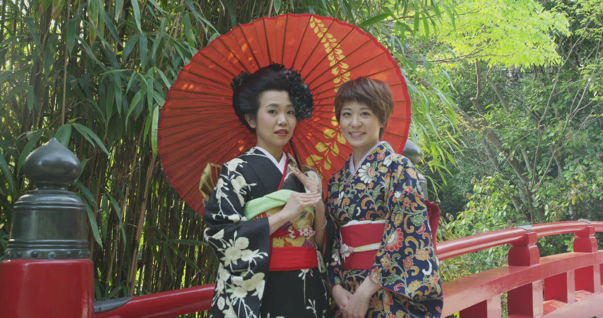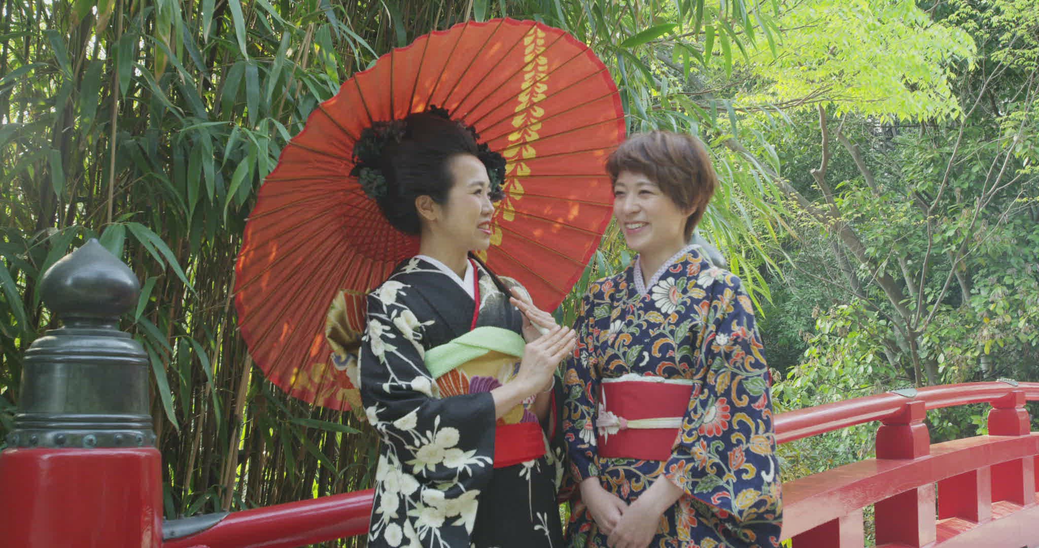 Japanese Woman in Kimono with Umbrella