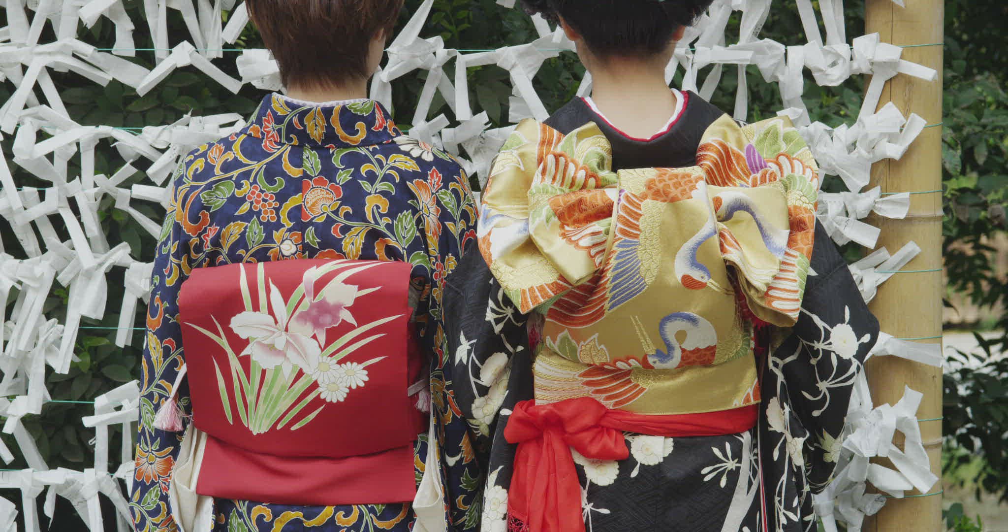 2 Japanese Women showing different kind of Obi