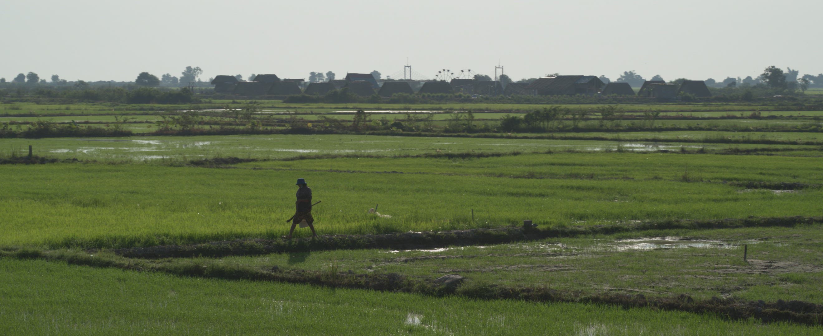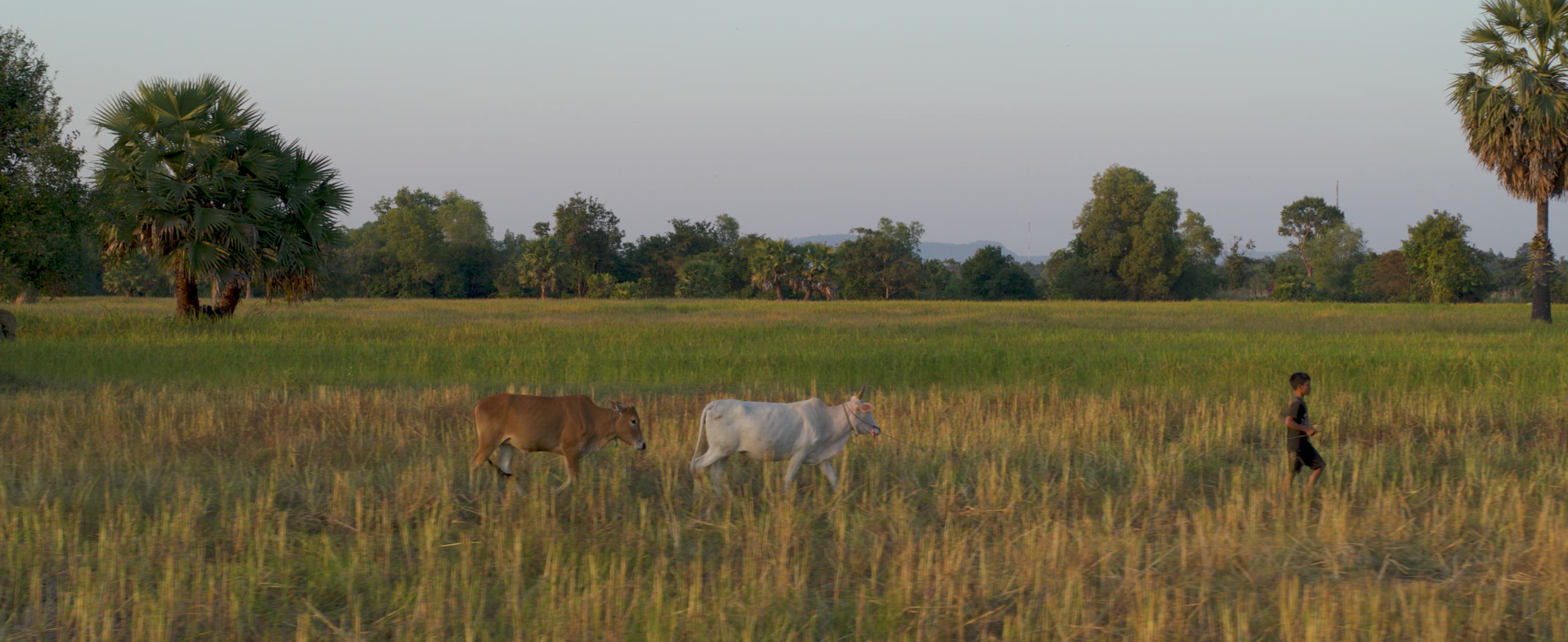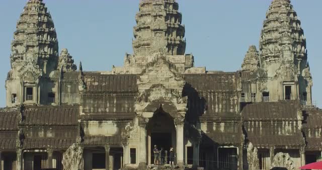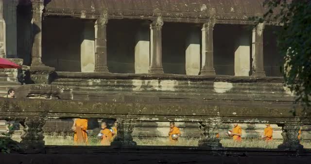 Sweet little cambodian girl walking towards the camera in the Angkor national park in Cambodia