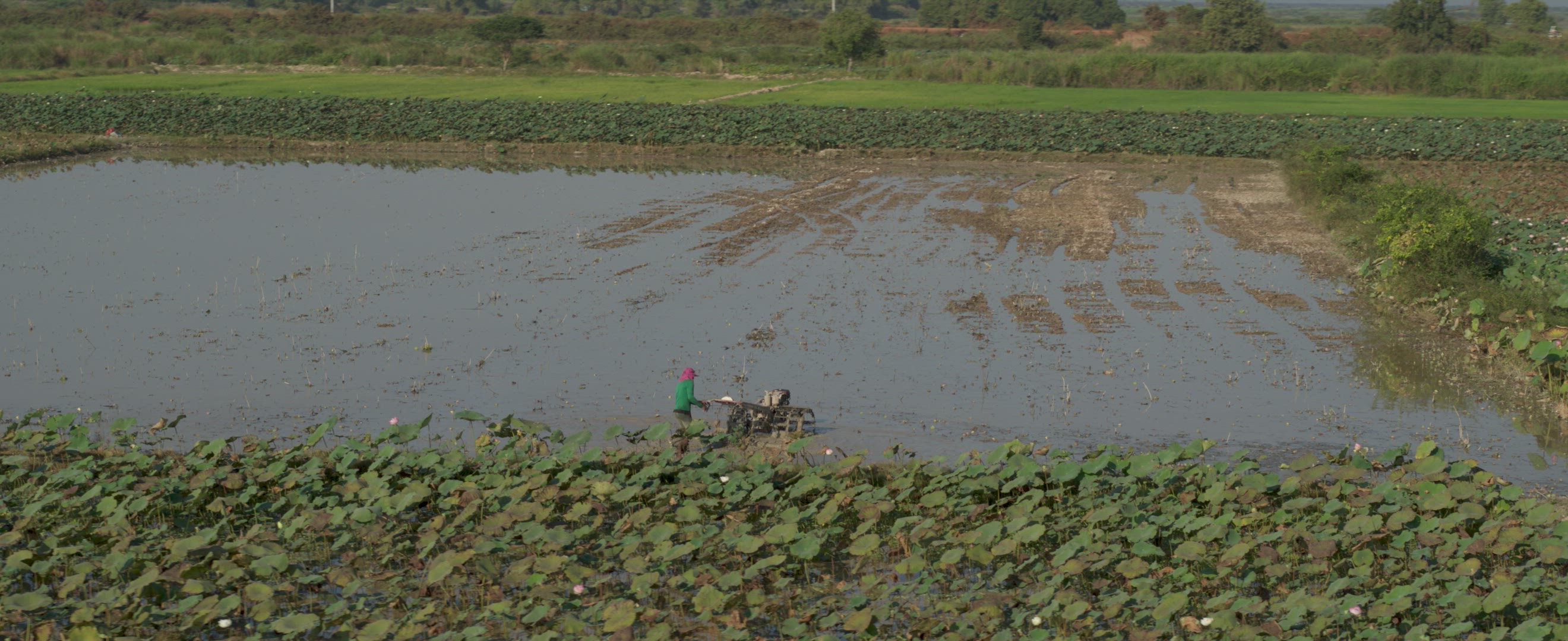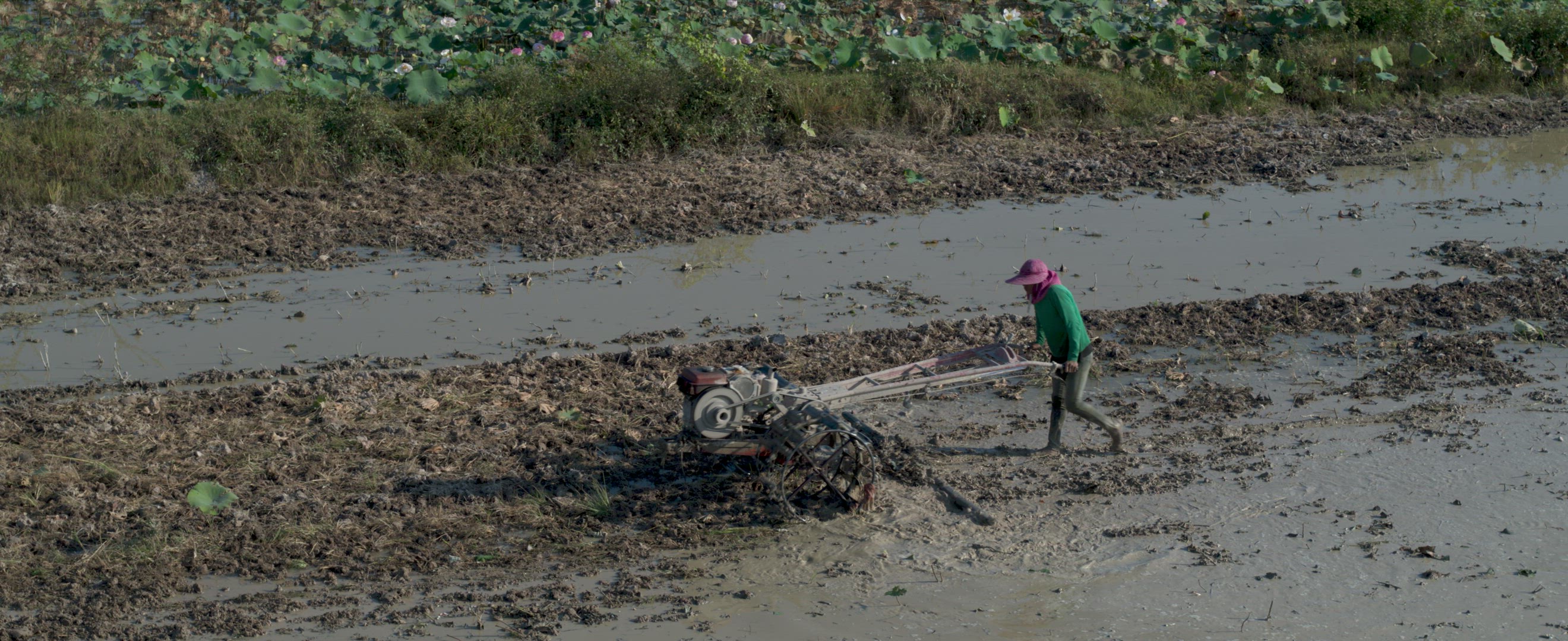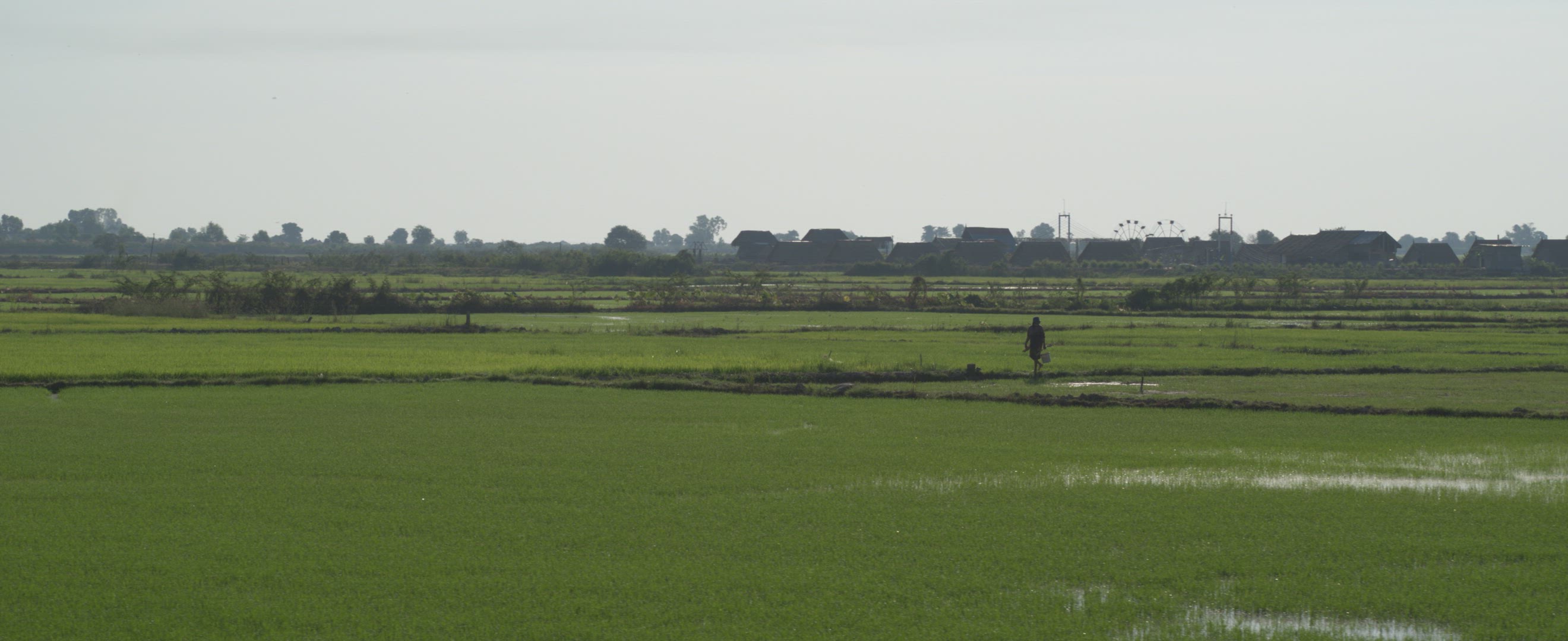 Sweet little cambodian girl walking towards the camera in the Angkor national park in Cambodia