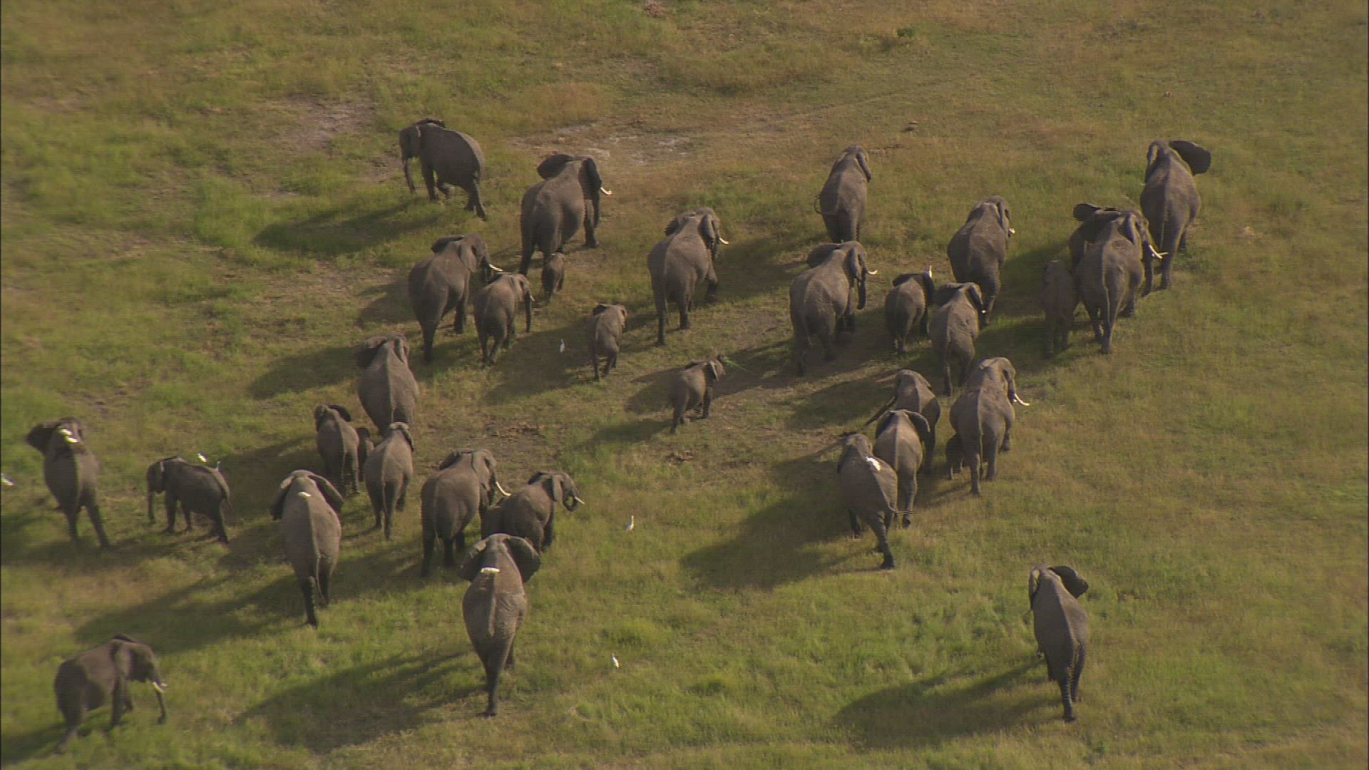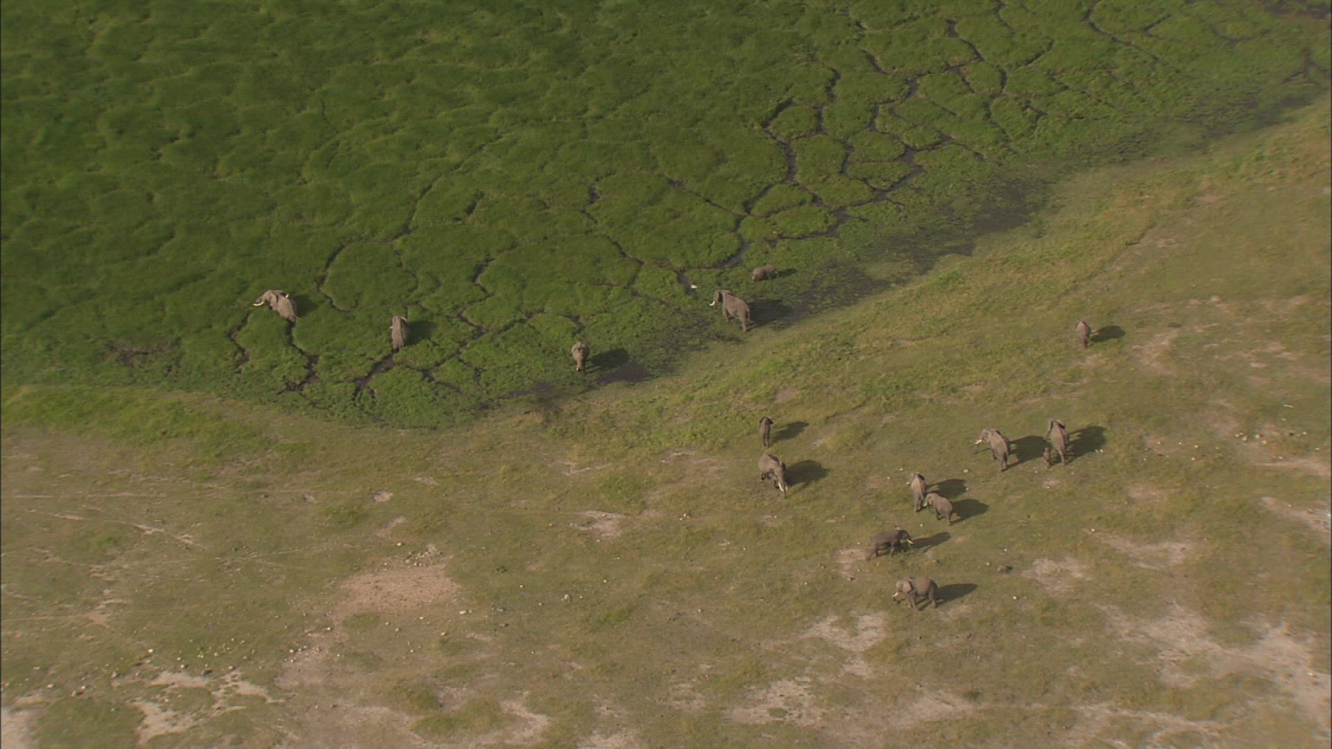 681944040 / Elephant Herd / Swamp / Kenya / Aerial
