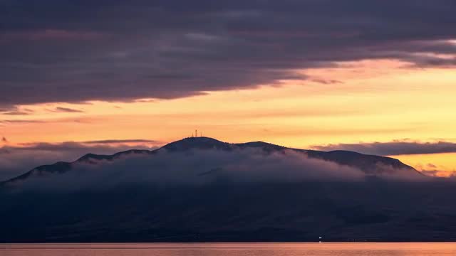 1050188 - Time lapse of mountain surrounded by clouds during colorful sunset