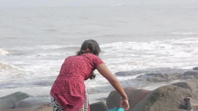 158967 - Mumbai_Woman Cleans Near Ocean_8I1A3808