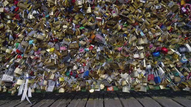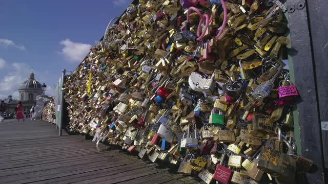 The Pont Des Artes bridge in paris features locks from couples expressing their eternal devotion.