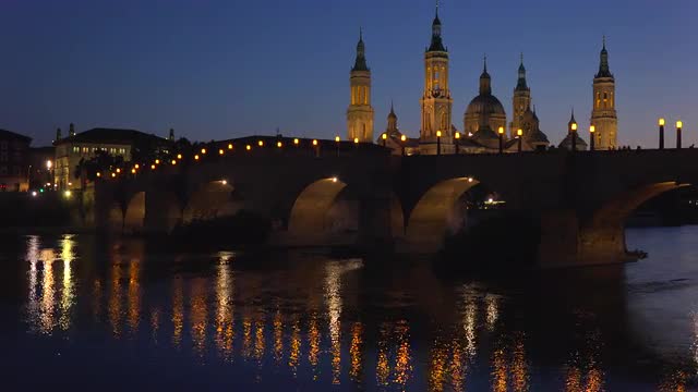> The classic and beautiful Catholic church at Zaragoza Spain at dusk.