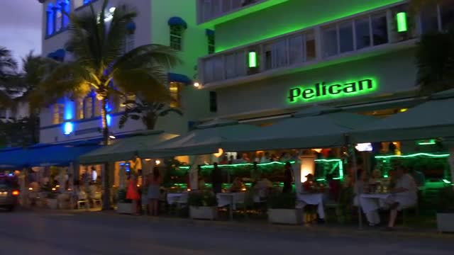 752312 - night light famous miami south beach ocean drive street restaurant 4k usa