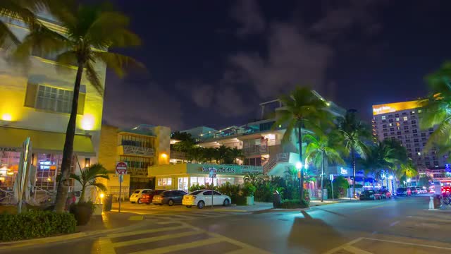 757134 - night light miami south beach ocean drive street view 4k time lapse florida usa