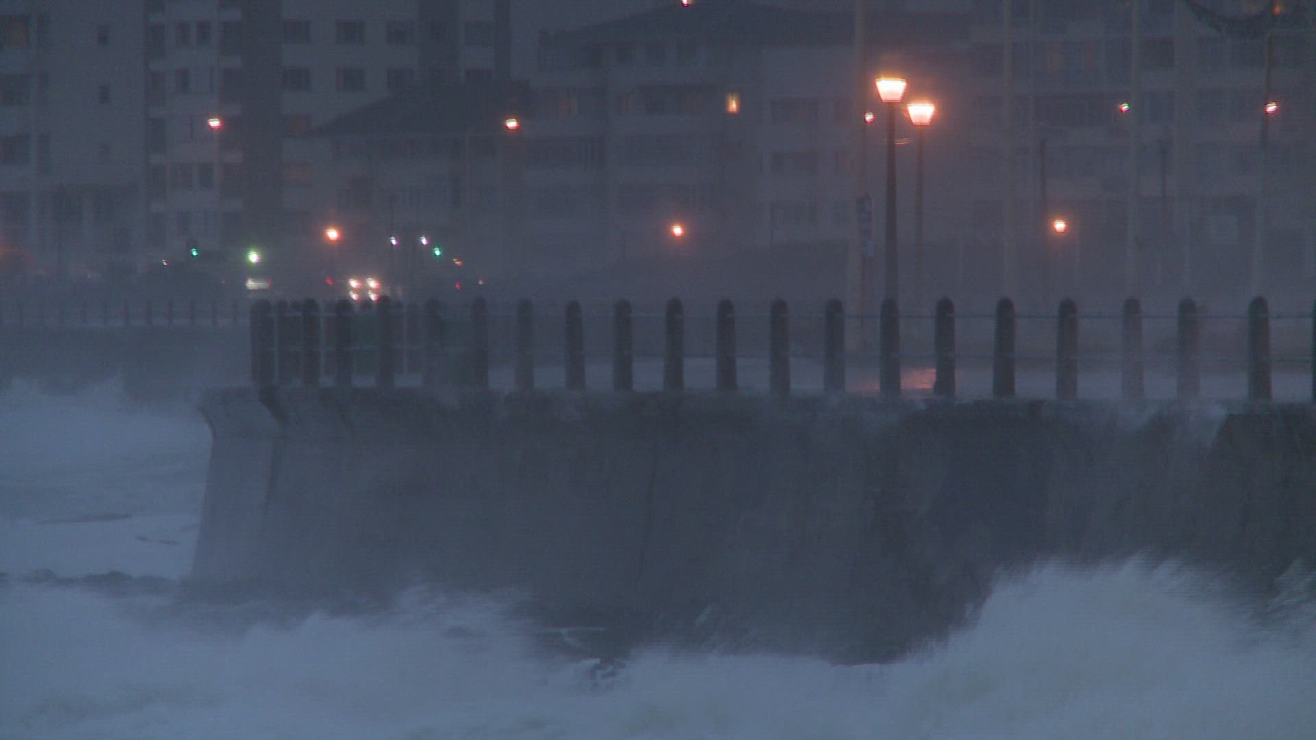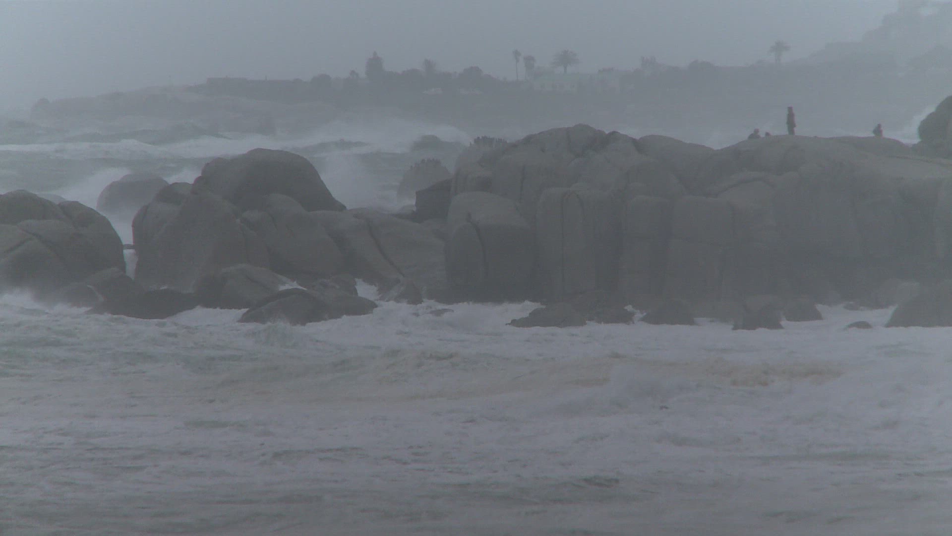 > Sanjon Creek washing beach sand into the ocean after heavy rain in Ventura, California.