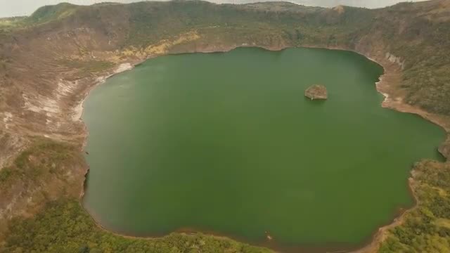 > Boat bow and landscape of Ceasar Lake in Parque Nacional Corcovado during a fly fishing trip in Sout