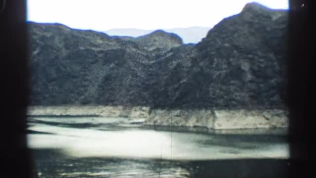 > Aerial view of powerlines snaking through the mountains near the Hoover Dam.