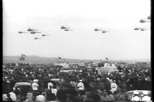 President Eisenhower's helicopters practice landings on the White House lawn in 1957.