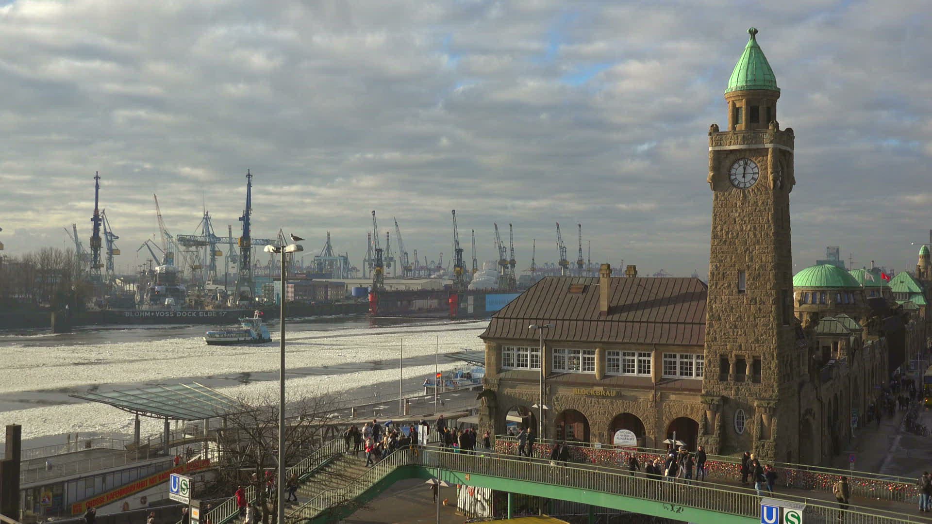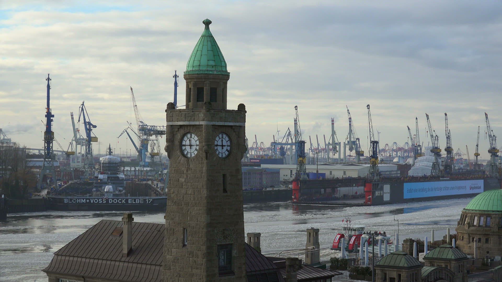 Hamburg, Fischauktionshalle, Fischmarkt, St. Pauli, harbour, Elbe river, winter