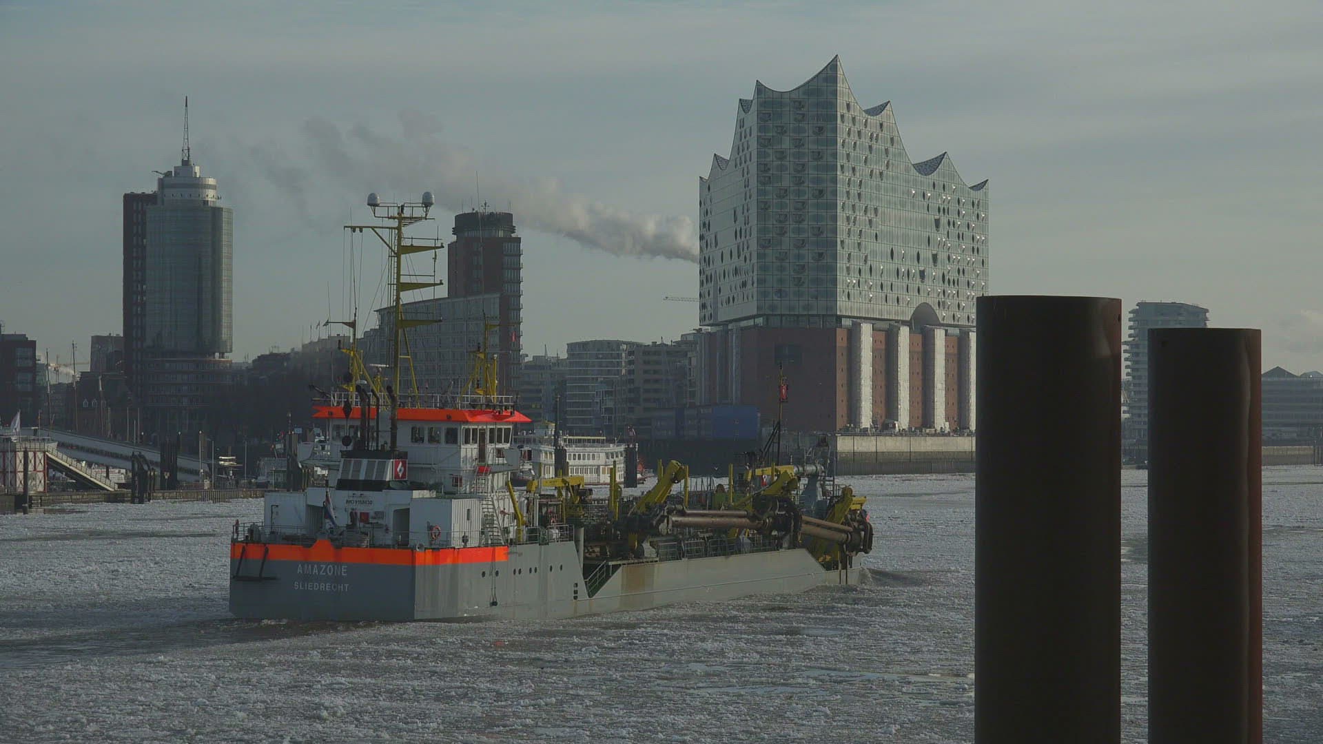 Hamburg, Elbe river in winter, Elbphilharmonie