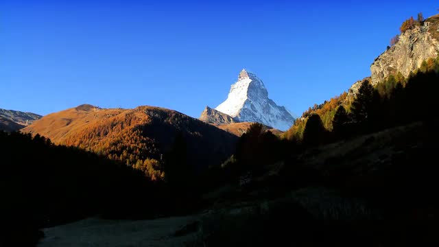 Matterhorn mountain at sunrise, Switzerland - quick time