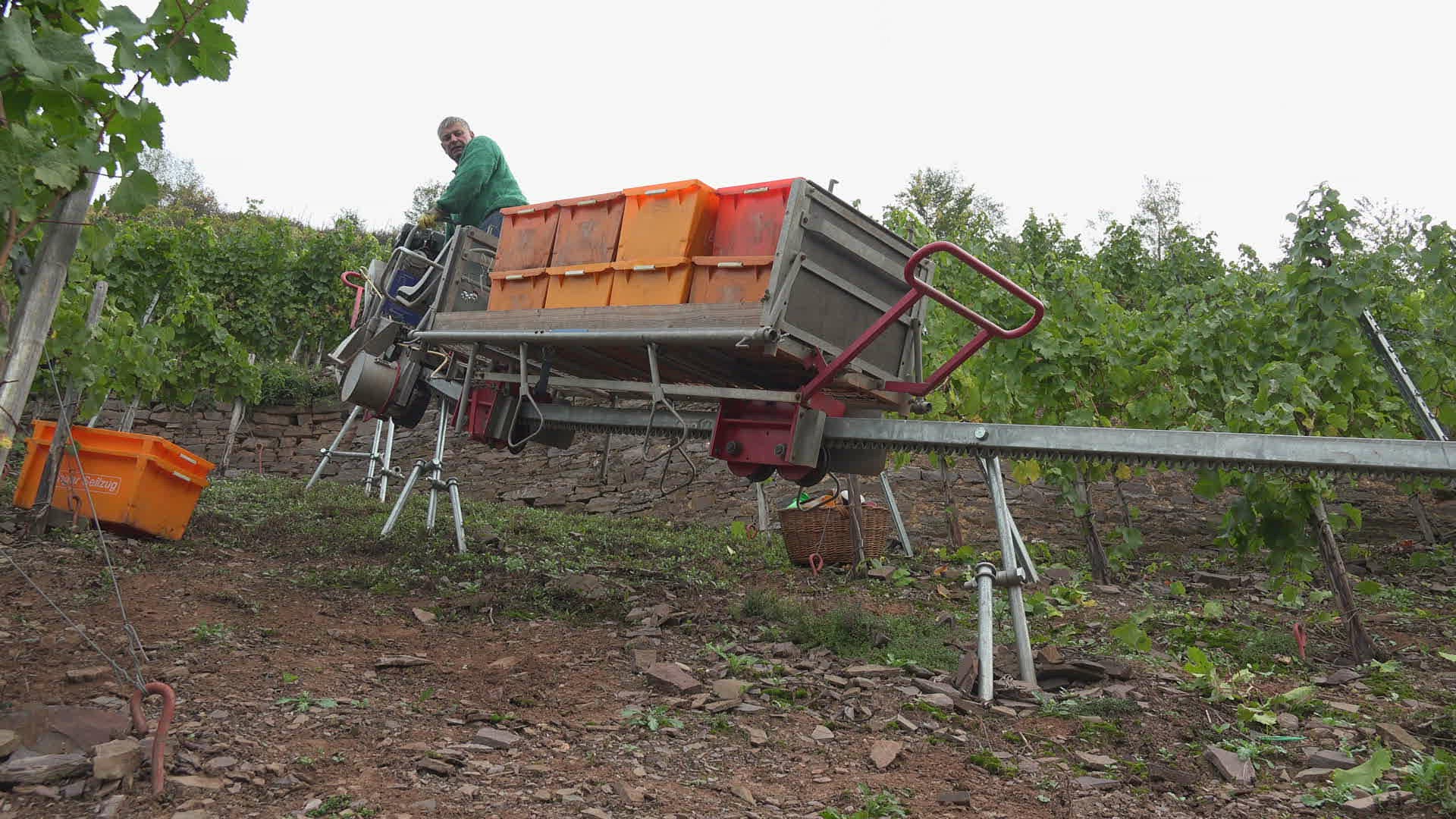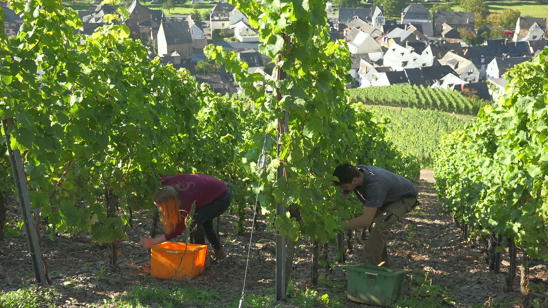 grape harvest in vineyard, winery Haupts, Ediger-Eller