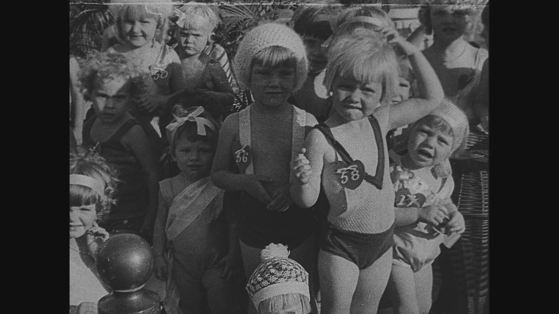 > Silent 1920s era film demonstrating a baby being washed and swaddled.