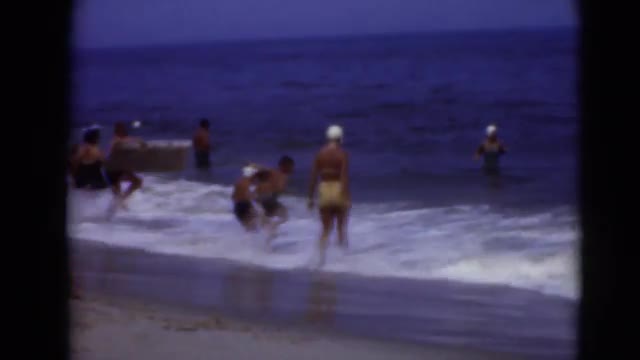 1960s era silent color home movie footage of children playing games at a park and children at a swim