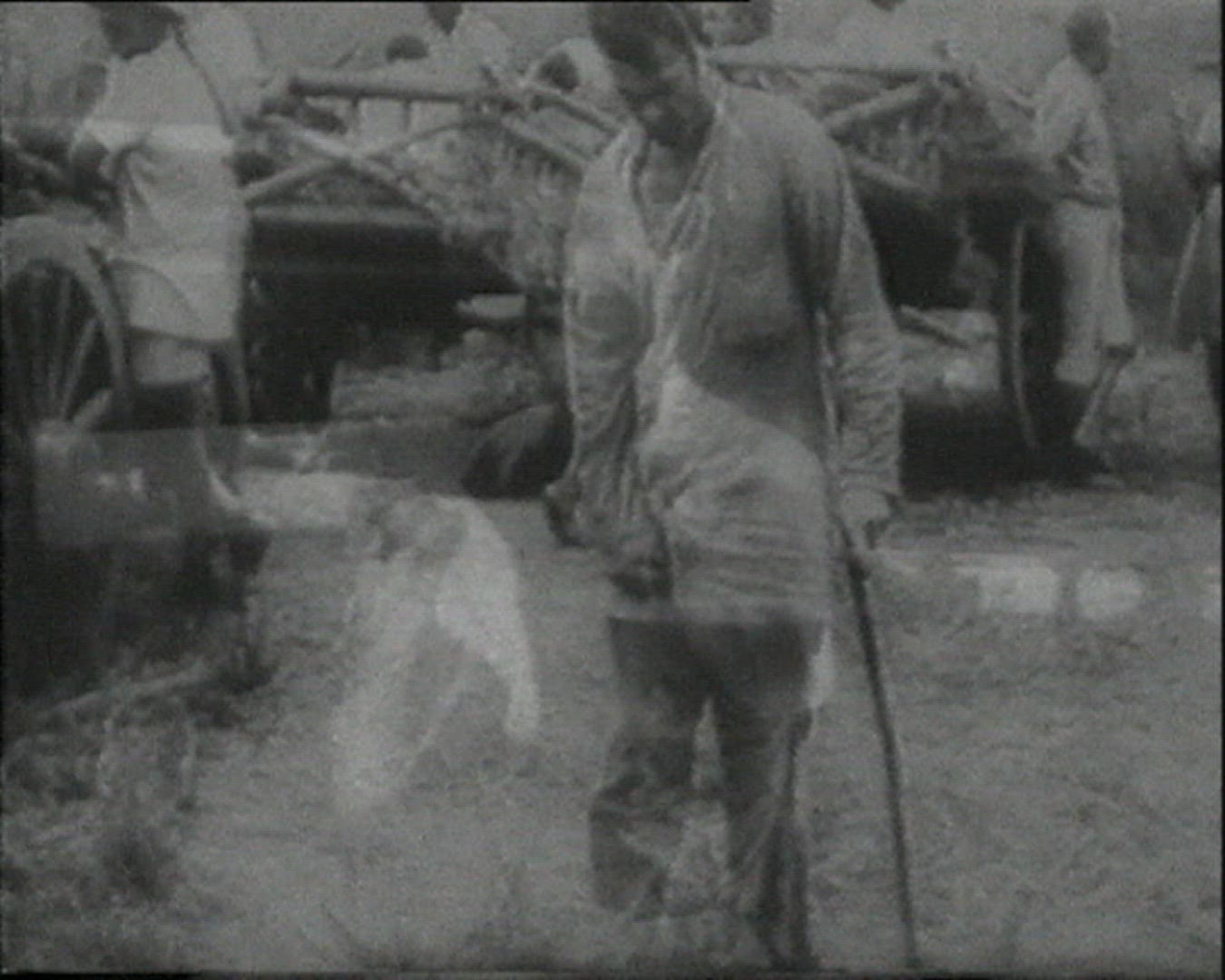 > American Indian tribal leaders make a sand painting in the 1930s.