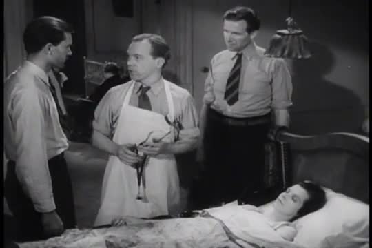 A woman goes into labor at home in the 1940s but obstetricians are there to help.