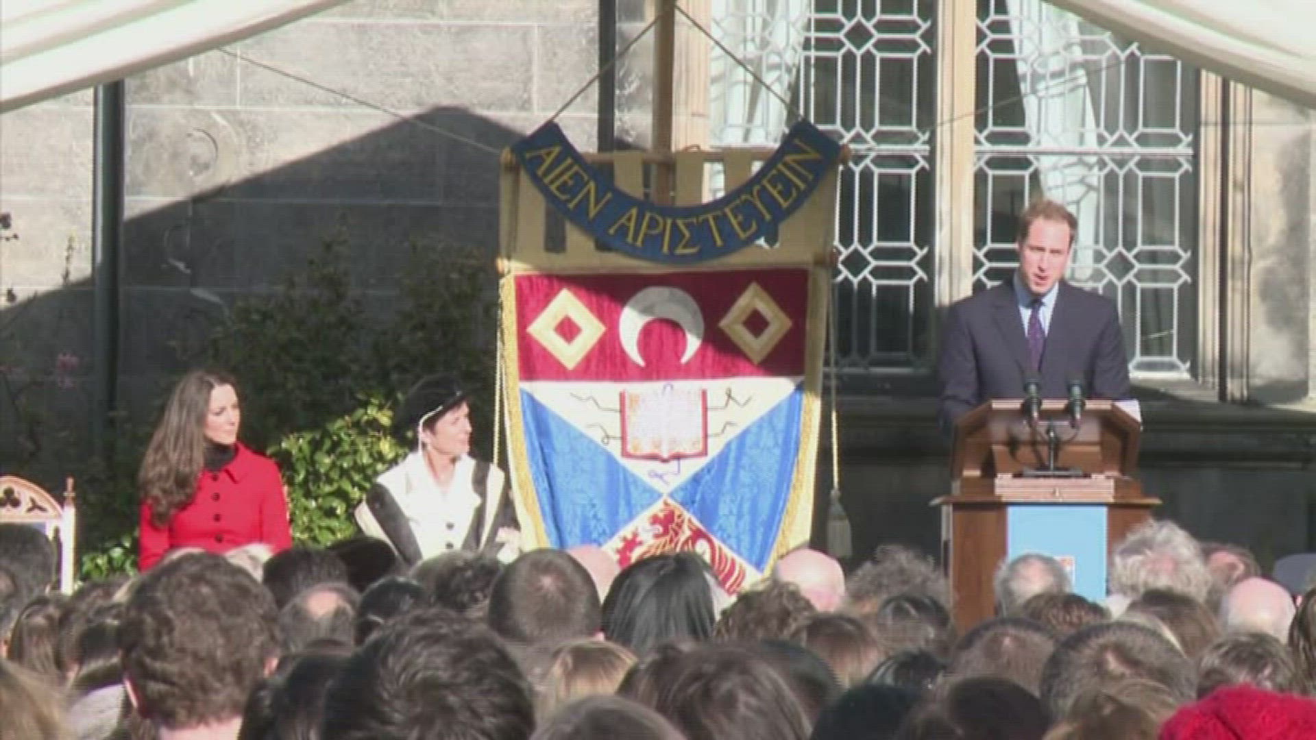 William and Kate visit university where love blossomed Prince William and his fiancee Catherine Middleton were greeted by thousands of well-wishers on Friday as they returned to the Scottish university where their romance began. As excitement mounts ahead of their April 29 wedding, crowds lined the streets of St Andrews on Scotland's east coast as the royal couple paid an official visit to the historic university where they studied. Images and soundbites. REFILING AFTER TECHNICAL PROBLEMS. PLEASE NOTE THIS FOOTAGE CONTAINS NEW IMAGES AND SOUNDBITES.