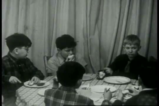 > Children work on a project together in school in the 1950s.